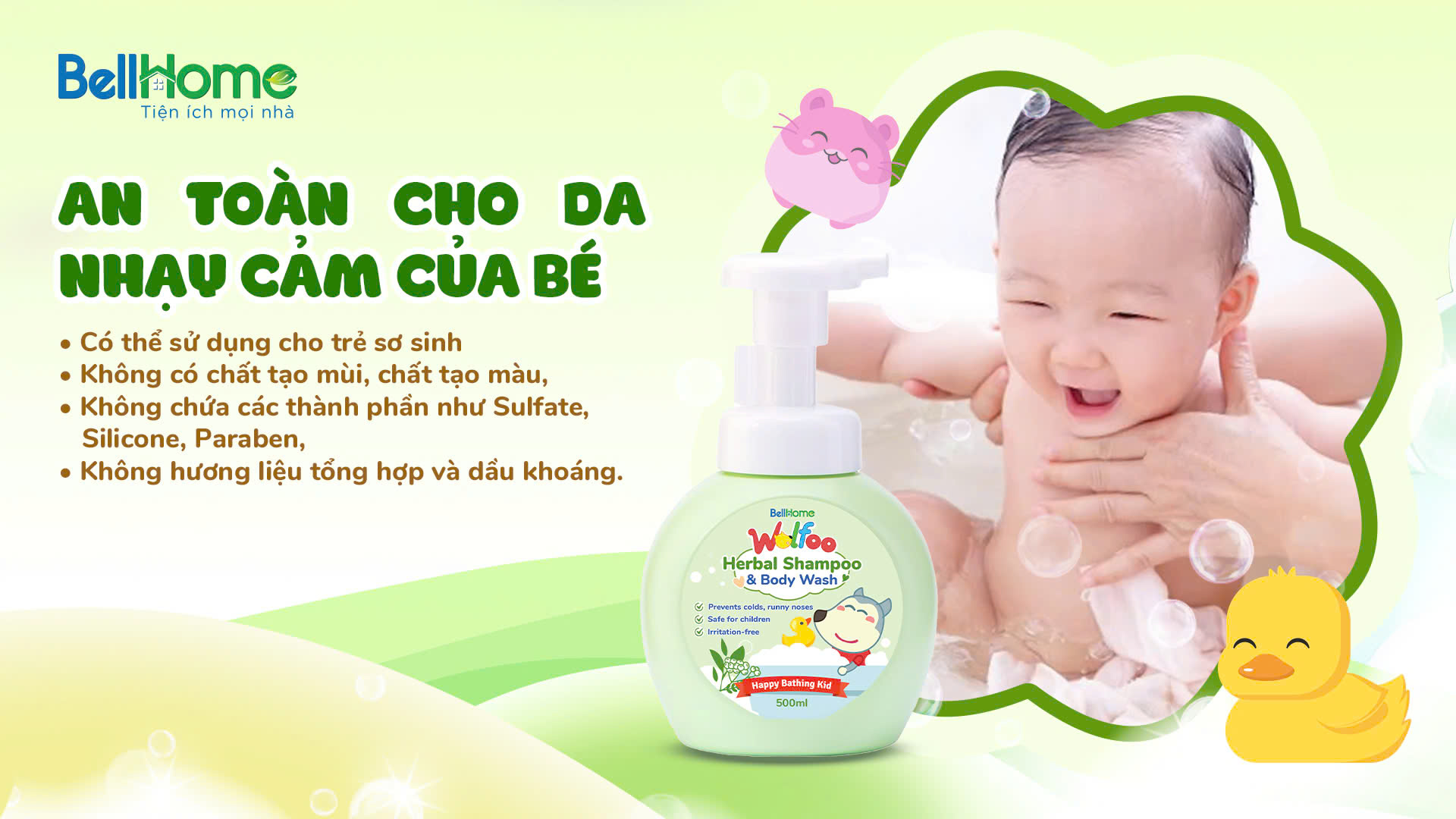 Tắm gội Thảo dược Wolfoo Baby Bell Home - Tốt cho bé, nhàn cho mẹ