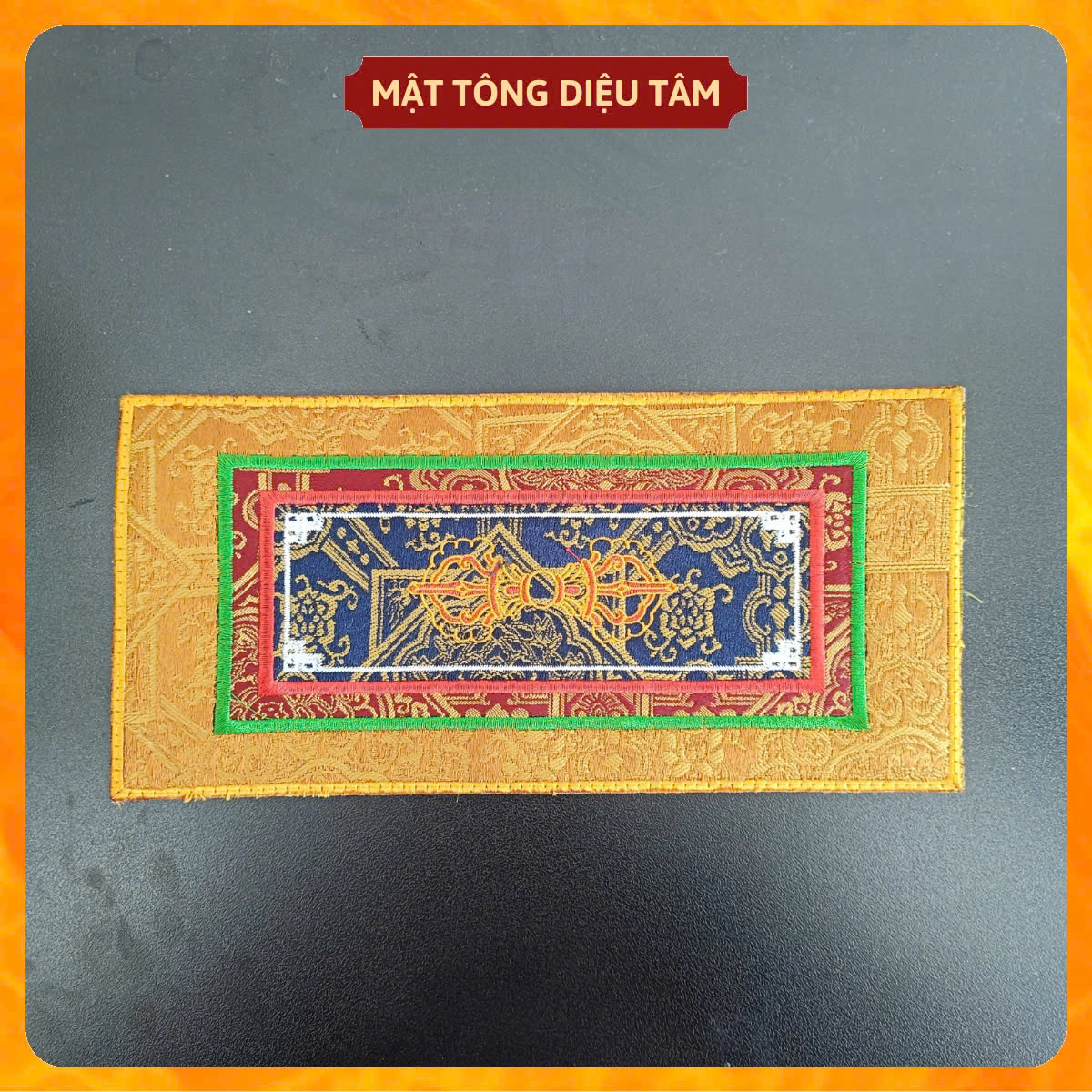 Mua tại TiktokTấm lót tượng, pháp khí Khăn gấm chuông chày kim cang chữ nhật biểu tượng pháp luân và chùy kim cang Mật Tông Diệu Tâm