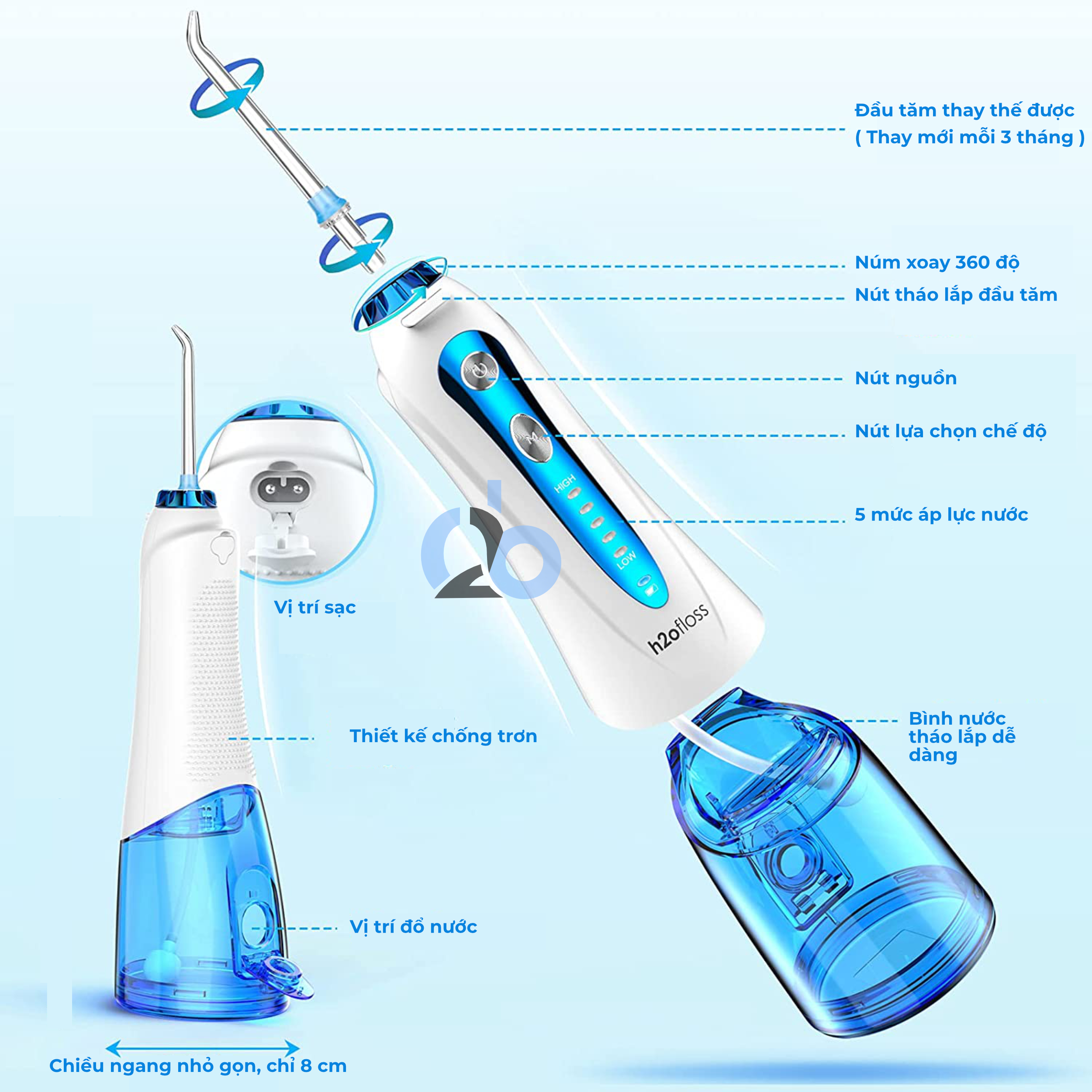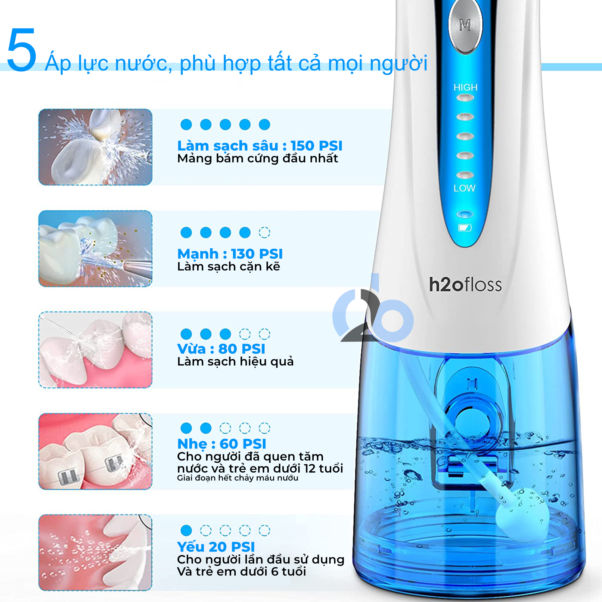 Tăm Nước Chính Hãng H2ofloss HF-9P - Phiên bản nâng cấp từ HF6 - H2ofloss sáng lập bởi cựu kỹ sư của Waterpik với mong muốn tạo ra 1 sản phẩm tốt như Waterpik nhưng