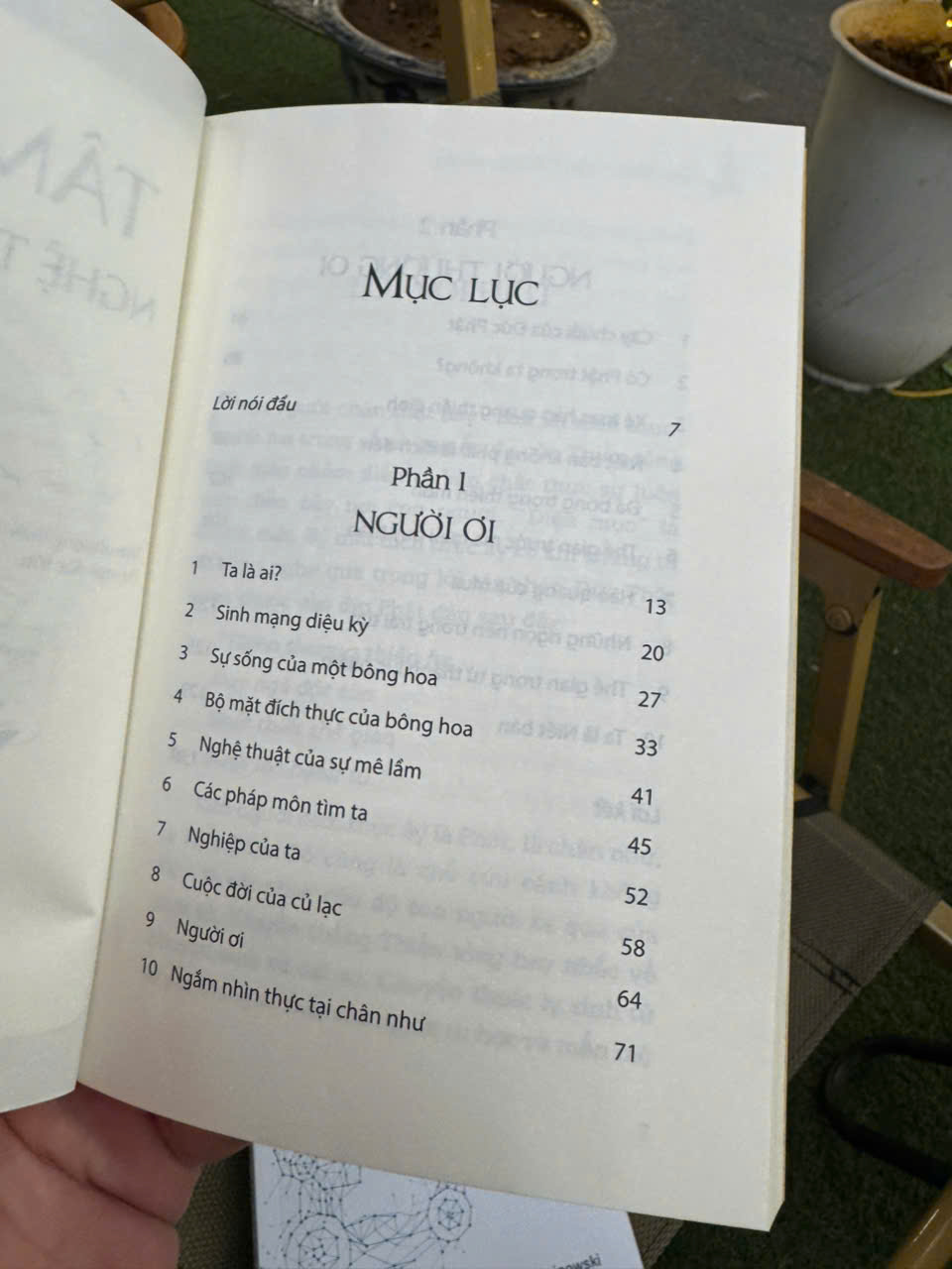 Cuốn sách không phải là một tập hợp những giáo điều khô khan, khó nuốt. Bằng ngôn ngữ giản dị, gần gũi, tác giả Đinh Thanh Tùng dẫn dắt bạn bước vào một cuộc hành trình khám phá nội tâm đầy bất ngờ và thú vị. Ở đó, những khái niệm trừu tượng của Phật giáo như "vô thường", "vô ngã", "tính Không" hiện lên thật sinh động qua hình ảnh của một bông hoa mong manh, một củ lạc bé nhỏ, hay thậm chí là một trận đá bóng sôi động,…