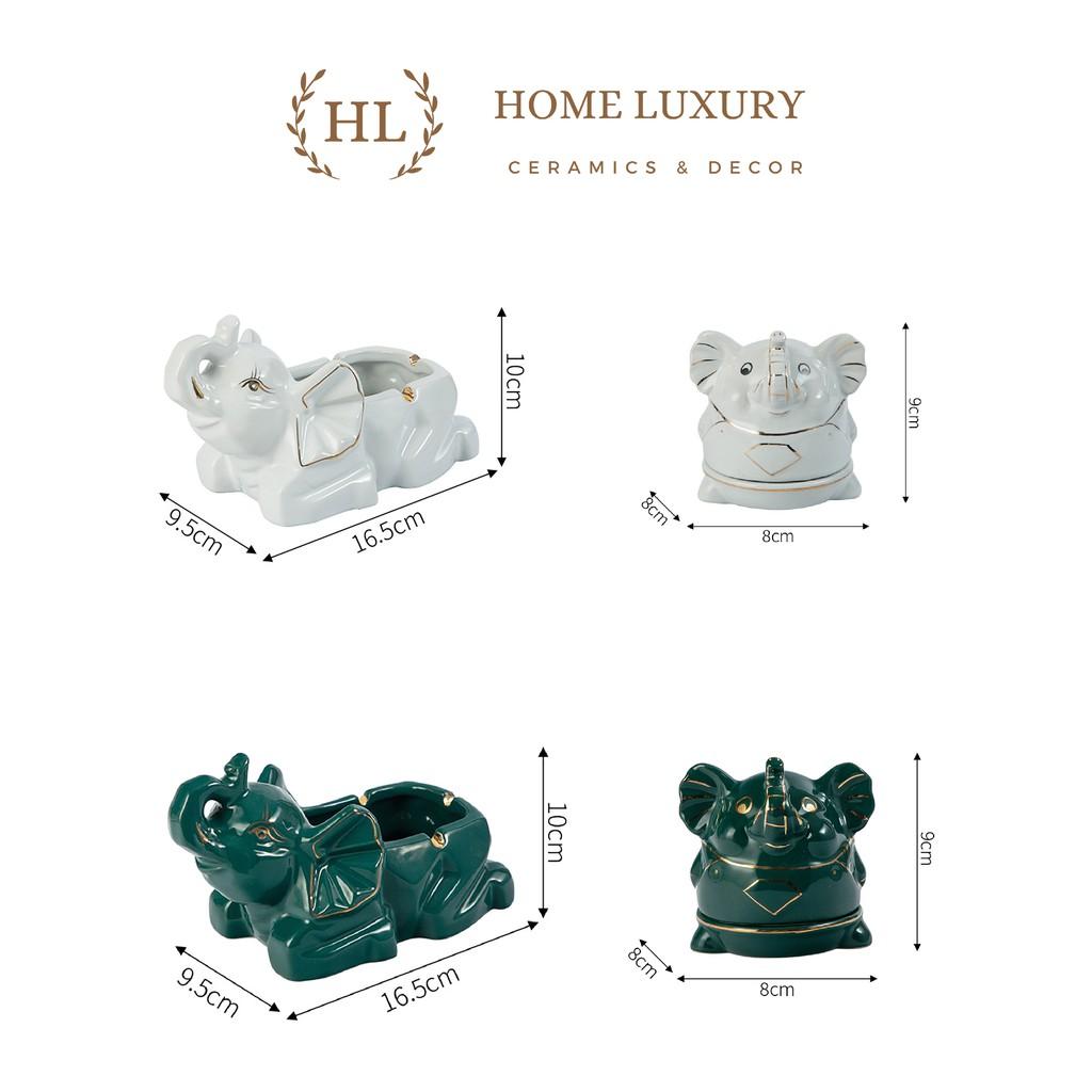 ✨TĂM SỨ | GẠT TÀN SỨ | SET TĂM GẠT TÀN SỨ HÌNH CON VOI XANH TRẮNG KẺ VÀNG KIM CAO CẤP 2022
