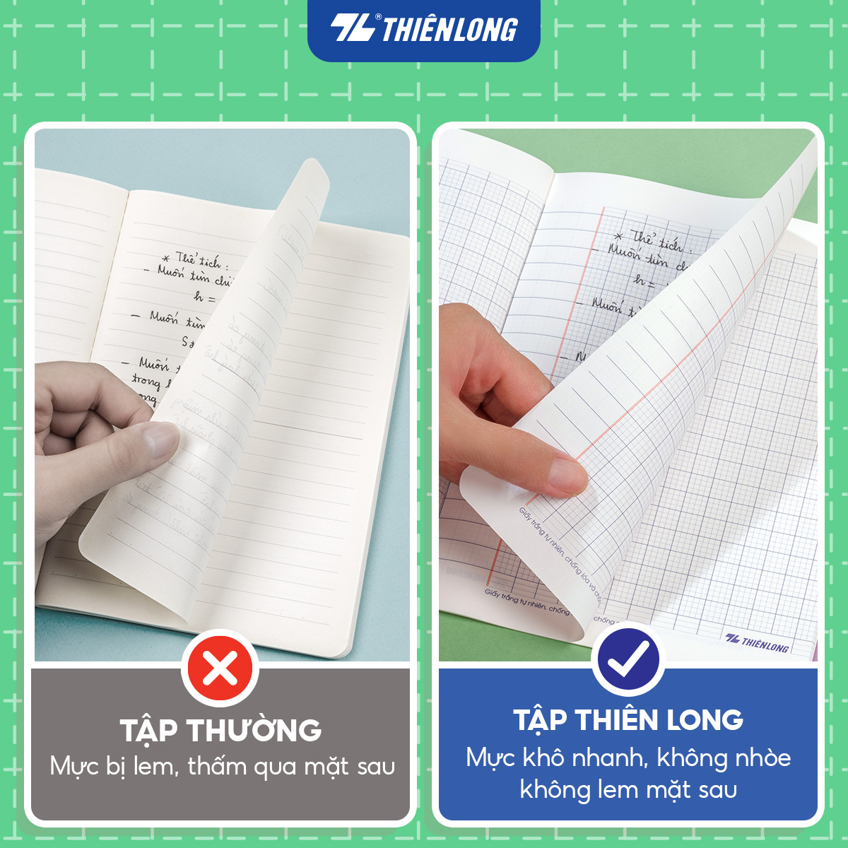 - Tập học sinh Thiên Long - Sản phẩm được sản xuất theo công nghệ hiện đại, màu sắc đẹp, sắc nét.