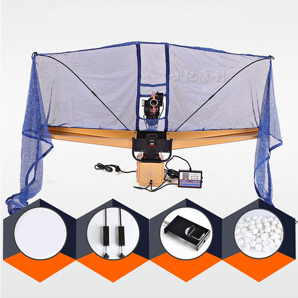 - được thiết kế dạng gắn với mặt bàn khi lắp đặt giúp tiết kiệm diện tích và người chơi sẽ ít phải đi nhặt bóng hơn khi sử dụng tập luyện. Sản phẩm còn có bộ lưới thu bóng đi kèm rất tiện dụng và có bộ điều khiển từ xa giúp điều chỉnh tốc độ, độ xoáy và hướng bắn bóng rất dễ dàng. Ngoài ra, máy cũng có thể gập gọn vào sau khi sử dụng.