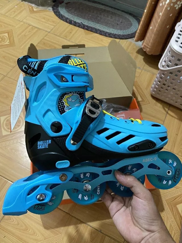 Mua tại TiktokGiày Trượt Patin Trẻ Em Centosy - Centosy T-rex, Có Bánh Đèn Phát Sáng, Giày Patin Trẻ Em Tặng Kèm Mũ Và Bảo Hộ MÔ TẢ SẢN PHẨM: – Tên sản phẩm: Patin Centosy T-rex – Loại giày: sản phẩm dành cho trẻ em – Màu sắc: xanh / đen/ hồng – Size giày: S/ M/ L LƯU Ý: SIZE GIÀY PATIN SẼ= SIZE GIÀY THỂ THAO THƯỜNG + 1 HOẶC 2 SIZE. VÍ DỤ SIZE GIÀY THỂ THAO LÀ 31 THÌ SIZE GIÀY PATIN SẼ LÀ 32,33 ( TƯƠNG ĐƯƠNG VỚI SIZE M) THÔNG SỐ CHI TIẾT: – Form giày: giày trượt patin trẻ em làm từ nhựa Plastic siêu bền, vỏ dày dặn, chống va đập, tránh khả năng lật mắt cá chân khi sử dụng. Có thiết kế khỏe khoắn và style cá tính. – Boot giày: giày trượt patin trẻ em làm từ vải sợi tổng hợp Polyester dày và êm. Lớp vải lưới thông thoáng, thấm hút mồ hôi. – Khóa thân: giày được thiết kế 2 khóa dạng cứng chắc chắn, một khóa ở cổ chân và một khóa ở thân giày, kèm theo dây buộc linh hoạt theo nhu cầu sử dụng – Đế giày: từ cao su chống sốc khá êm chân, chống va đập chân vào phần thân nhựa. – Frame: làm từ kim loại sắc nét, chịu lực, không cong vênh biến dạng khi chịu lực. -Bánh giày: được cấu tạo từ hợp chất cao su đặc, nhưng cũng không kém phần mềm mại, độ cứng 82A- độ bền cao, chống mài mòn, Bánh có kích thước: Size 35-38: 72mm – Vòng bi: ABEC 9 Stand trơn tru giúp giày trượt mượt, tạo sự nhanh nhạy và tốc độ quay ổn định. – Trọng lượng: Tối đa 60kg HƯỚNG DẪN SỬ DỤNG: – Trong quá trình sử dụng giày patin trẻ em các ốc vít có thể bị lỏng cần thường xuyên kiểm tra để đảm bảo ốc vít tại các bộ phận luôn chặt chẽ, đặc biệt là bánh xe. Đặc biệt, sử dụng bánh xe có thể bị hỏng, mòn cần thay thế để đảm bảo an toàn cho bé – Hạn chế đi vào các địa hình xấu, nhiều vật sắc nhọn hay đường dễ trơn trượt.