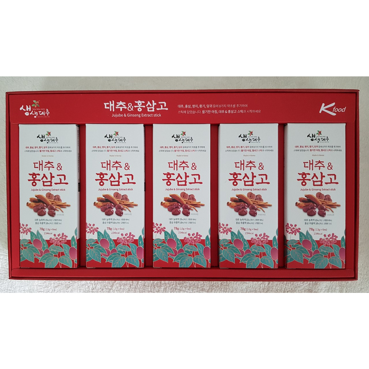 Thành phần: Nước cốt táo đỏ 15% ( hàm lượng chất rắn 60%) chiết suất hồng sâm 10%, nước cốt Hồng sâm 47.5% ( hồng sâm 70%, đường trái cây 25%, đường nho 5%) hỗn hợp chiết suất thảo dược cô đặc 27.5% .