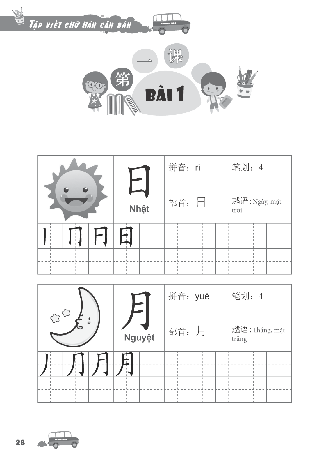 Dựa vào một trong bốn phương pháp trên nên chúng tôi biên soạn cuốn: TẬP VIẾT CHỮ HÁN CĂN BẢN nhằm giúp bạn đọc luyện viết dễ dàng hơn. Cuốn sách gồm 4 phần: