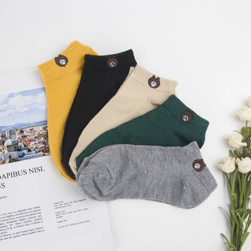 Sét 5 đôi Tất chân họa tiết gấu cổ ngắn | bán trên kênh tiktok anhhongreview