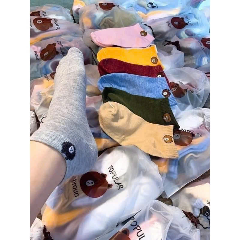 Combo 10 Đôi Tất Nữ Cổ Ngắn Hình Gấu Đủ Màu