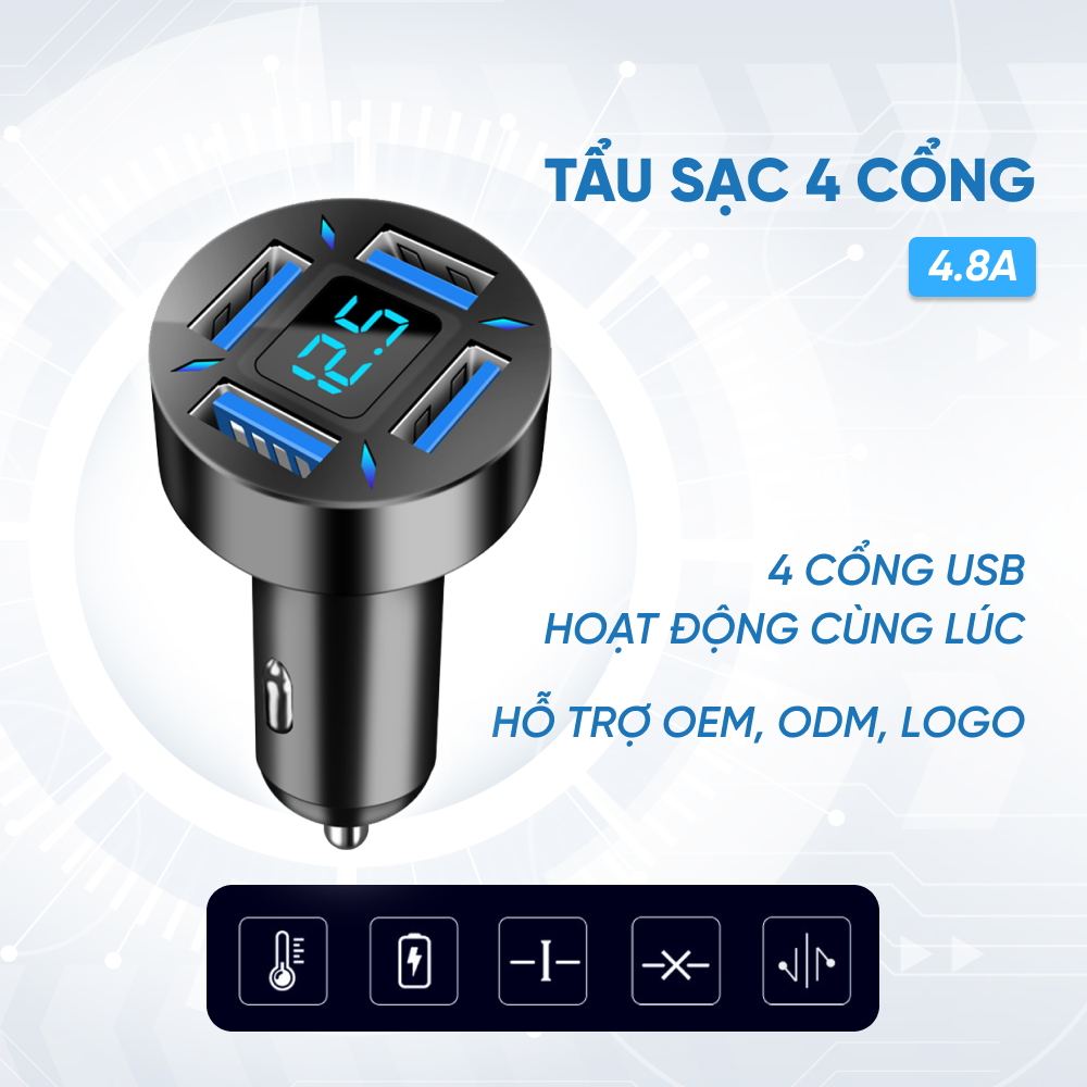 Tẩu Sạc Xe Ô Tô 4 Cổng USB Công Nghệ Sạc Nhanh QC 3.0A THÔNG TIN SẢN PHẨM: - Chất liệu: ABS - Các tính năng: Ổn định điện áp, Cắm và chạy, Chống