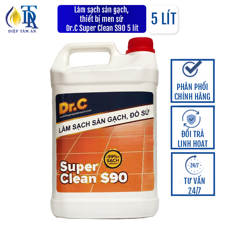 *CÔNG DỤNG: Tẩy Bồn Cầu Bị Ố Vàng,Tẩy Gạch Men,Tẩy Xi Măng,Nước Tẩy Nhà Vệ Sinh,Tẩy Rong Rêu Vôi Vữa Dr.C Super Clean S90  Lít, làm sạch nhanh và mạnh các vết bẩn cứng đầu bám trên bề mặt như:-Tẩy xi ...