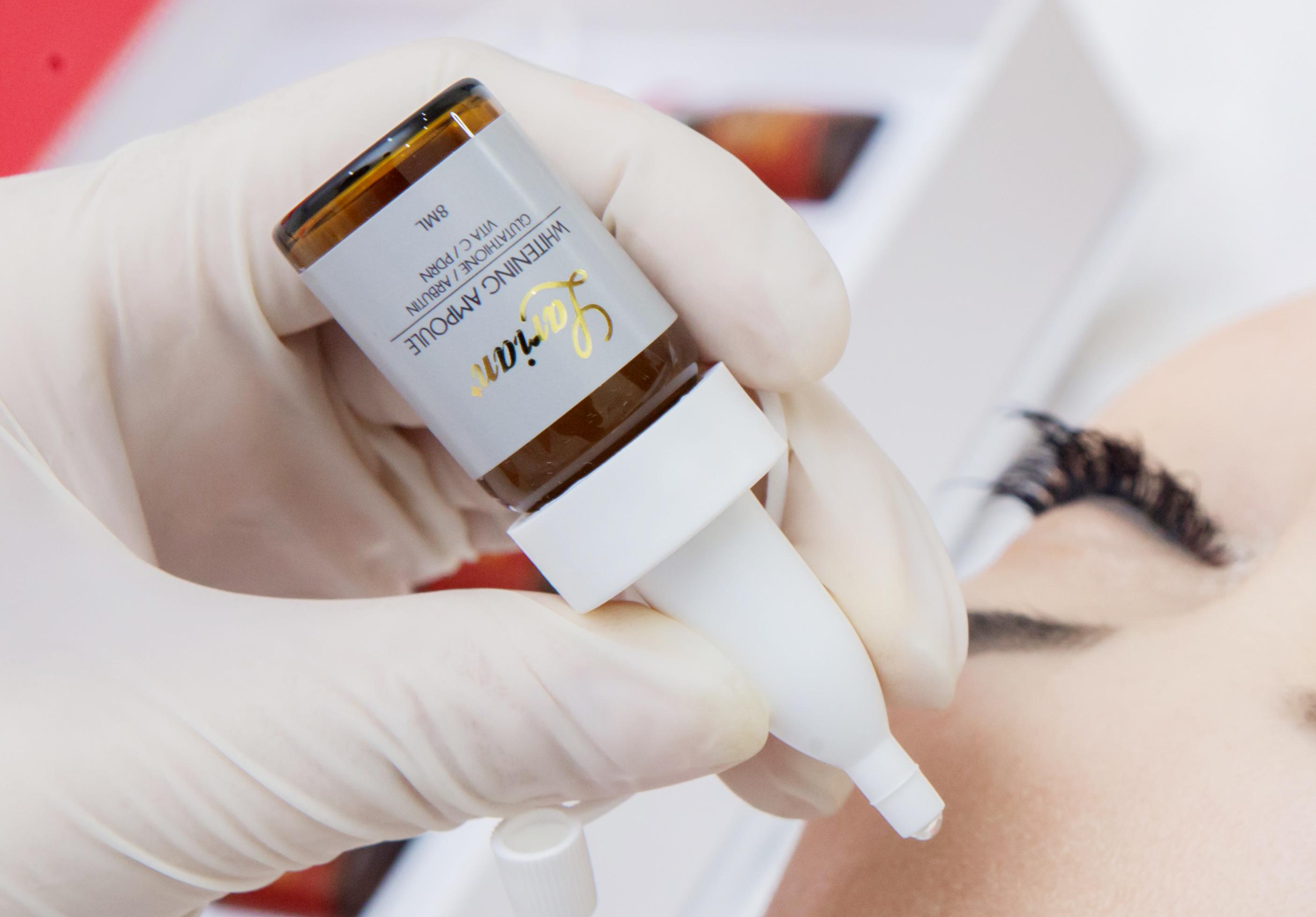 Đặc điểm sản phẩm: Whitening ampoule giúp ức chế sản xuất melanin, loại bỏ thâm nám, tàn nhang. Cung cấp các dưỡng chất làm trắng sáng da, đồng đều màu da. Tái tạo, phục hồi da bị tổn thương, da bị tăng sắc tố do sử dụng các loại mỹ phẩm nhiễm coticoir, do lăn kim, phi kim, laser…. Whitening ampoule cung cấp các axit amin cần thiết giúp kích thích sản sinh các tế bào da mới cho làn da khỏe mạnh và loại bỏ hiệu quả tình trạng nám, tàn nhang, các đốm đen, vết chân chim, các vùng da không đều màu, nuôi dưỡng da trắng sáng từ sâu bên trong. Sử dụng thường xuyên giúp bổ sung độ ẩm cho da, tạo lớp hàng rào bảo vệ giúp da tránh khỏi tình trạng mất nước, thô ráp, bong tróc, se khít lỗ chân lông, tăng cường độ đàn hồi cũng như xóa mờ các nếp nhăn…