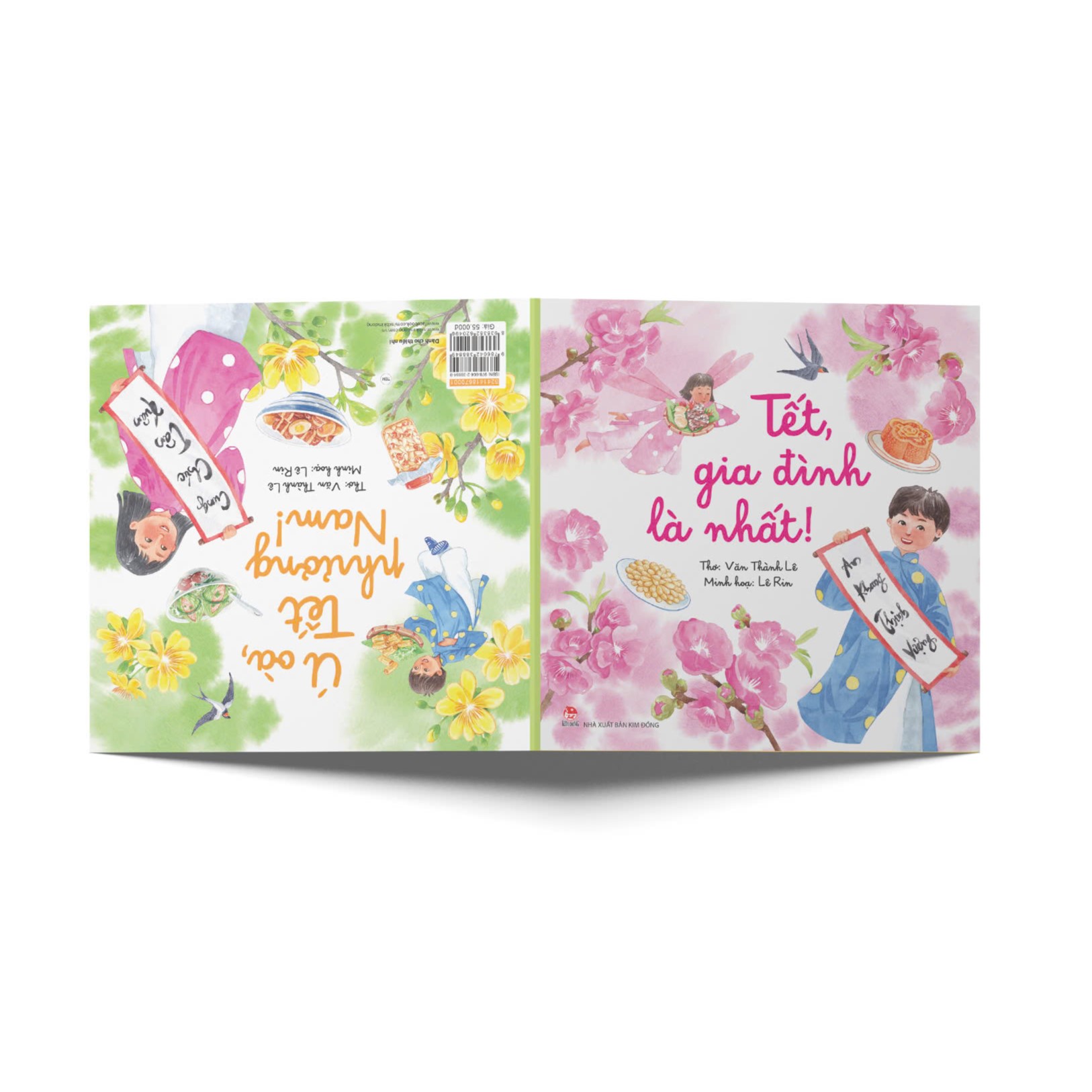 Mua tại TiktokCuốn thơ Tết đặc biệt này gồm hai bài thơ được in hai mặt sách (đọc ngược, đọc xuôi sách đều được) với hai nhân vật cùng khám phá những nét đẹp của ngày Tết quê hương. Những vần thơ trong trẻo của tác giả Văn Thành Lê được minh hoạ sinh động và rực rỡ qua phong cách vẽ màu nước đặc trưng của hoạ sĩ Lê Rin mang tới không khí Tết rạo rực, ấm cúng, trải dài khắp mọi miền quê. “Nơi nào Tết đi qua Là tiếng cười đọng lại Là mùa xuân gõ cửa E ấp những ban mai. Ú oà, xin chào Tết! Nhanh lớn nào bạn ơi Bao miền đang vẫy gọi Chờ chúng mình đến chơi!”