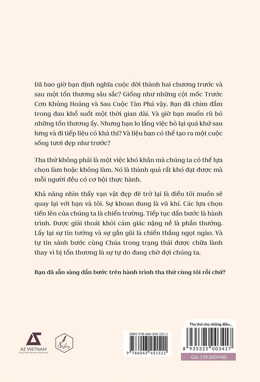 Cuốn sách “Tha thứ cho những điều bạn không thể lãng quên” là bản tiếng Việt của cuốn sách “FORGIVING WHAT YOU CAN'T FORGET” vô cùng vô cùng nổi tiếng, cuốn sách này là câu chuyện vô cùng chân thực của việc chữa lành sau tan vỡ và tổn thương. Đây là cuốn sách có hơi thở tôn giáo, với "sợi dây" mà tác giả đã bám vào trong lúc đau khổ vật vã chính là lời răn trong cuốn sách Kinh Thánh về Ân điển (Grace) và Lẽ thật (Trace). Cuốn sách không nặng nề tính tôn giáo, hay là một kiểu rao giảng đạo đức sáo rỗng và mụ mị. Nó có thể chạm đến trái tim người đọc, bởi chúng ta có thể cảm nhận được vô cùng chân thật sự chật vật của tác giả ngay cả khi cô ấy viết những dòng này. Luôn là những câu hỏi tại sao và “LIỆU MÌNH NÊN LÀM THẾ NÀO”, là 1 hành trình dài không ngừng chiêm nghiệm, tu dưỡng, học hỏi và tự vấn bản thân, để đến một ngày có thể thấu suốt mọi điều, và có thể đối mặt với tổn thương như với một người bạn từng quen lâu ngày mới gặp lại, có thể trao nhau nụ cười nhàn nhạt và hỏi những câu xã giao vô thưởng vô phạt kiểu "Bạn khỏe không?" "Cuộc sống ổn cả chứ?"