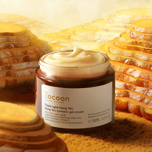 Thạch nghệ Hưng Yên Cocoon giúp làm sáng da và mờ thâm Thành phần chính :  Chiết xuất nghệ: tạo ra từ dịch chiết củ nghệ có tác dụng chống oxy hóa, làm dịu và làm lành các tổn thương trên da.  Curcuminoid: chống oxy hóa rất mạnh,giúp làm lành nhanh chóng các tổn thương trên da, ức chế một phần sự hình thành sắc tố melanin quá mức, phục hồi độ sáng khỏe tự nhiên của làn da.  Hexylresorcinol (HR): có tác dụng làm sáng da và bảo vệ da, hoạt động bằng cách điều chỉnh con đường hình thành sắc tố  Niacinamide: có khả năng làm sáng, ngăn ngừa lão hóa, tăng khả năng phục hồi của làn da, củng cố hàng rào miễn dịch của da. Công dụng :  Làm sáng, giúp làn da đều màu hơn  Làm mờ vết thâm do mụn để lại  Cải thiện bề mặt của da, giúp da trở mên mềm mại và ẩm mịn.  Sản phẩm thích hợp cho mọi loại da  Giải pháp cho tình trạng da :  Da xỉn màu, thâm sạm do mụn để lại.  Da khô sần, mệt mỏi, thiếu sức sống, kém mịn màng. Hướng dẫn sử dụng :  Lượng dùng : Một lượng bằng nửa đồng xu  Sử dụng sau bước Tinh Chất Nghệ (serum)  Thoa đều một lượng vừa đủ lên da mặt, dùng hai lần mỗi ngày sáng và tối để đạt hiệu quả tốt nhất.   Xuất xứ : Việt Nam   Ưu điểm Không Sulfate Không Paraben Không chứa cồn Không dầu khoáng Không thử nghiệm trên động vật   LƯU Ý KHI MUA HÀNG: Cảm ơn quý khách đã quan tâm đến sản phẩm bên shop, quý khách vui lòng dành ít thời gian đọc kĩ chính sách bảo hành đổi trả:   ️Shop nhận đổi trả trong trường hợp hàng sai mẫu, size, màu do shop gửi. Bên shop chỉ giải quyết khiếu nại khi quý khách có video clip khi mở/nhận hàng. ️Bảo hành đối với sản phẩm chính hãng, quý khách trực tiếp mang sản phẩm bảo hành tới trung tâm bảo hành của hãng.   Không nhận đổi trả khi sản phẩm bị hư hại do tác động ngoại lực từ người mua như móp, bể, trầy xước, nổ điện, rớt nước, rách tem bảo hành, không đầy đủ phụ kiện và hộp. Vì lượng hàng hoá nhiều shop không nhận đổi trả trong trường hợp khách không thích, không ưng màu, chất liệu; quý khách vui lòng đọc kĩ mô tả và xem hình ảnh cụ thể; nếu cần hãy chat với shop để được tư vấn.