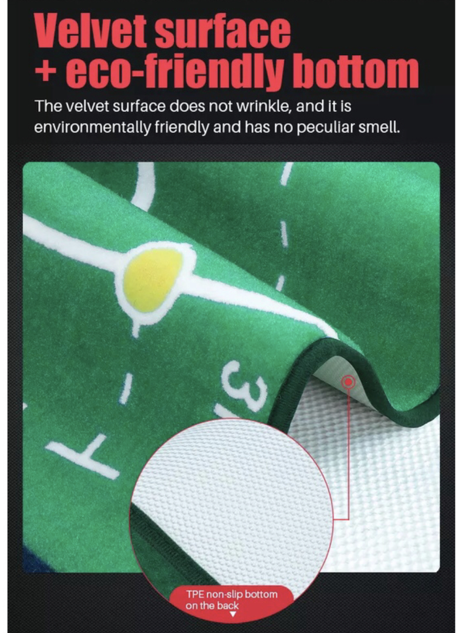 Thảm tập Putting Mat. Loại thảm Putting này là một sản phẩm có chất lượng cao, có thể đặt bóng ở nhiều vị trí khác nhau, đi kèm đó trên bề mặt thảm có vẽ