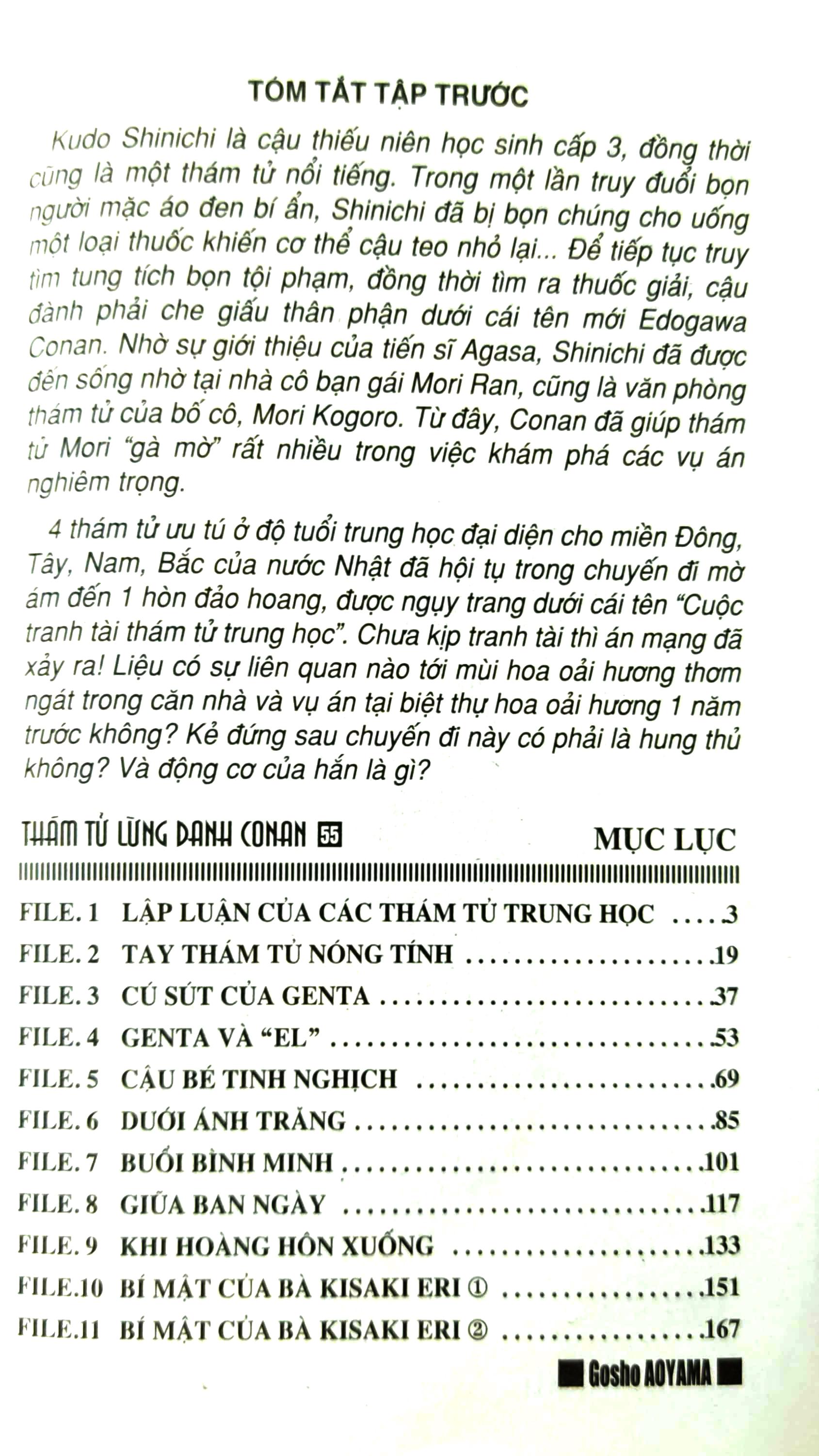 Mua tại TiktokThám Tử Lừng Danh Conan - Tập 54 Conan và đội thám tử nhí cùng đến Yukiyama. Các cô cậu nhóc đang vui thích làm người tuyết thì phát hiện ra xác của một nữ sinh vừa quen nổi trên mặt hồ dưới căn lều nhỏ bên vách đá. Conan bắt tay vào điều tra vụ giết người vô cùng khó tin đó! Trong tập này cũng có cả phần "Sân thi Koshien dành cho các thám tử" đang rất được bạn đọc yêu thích!