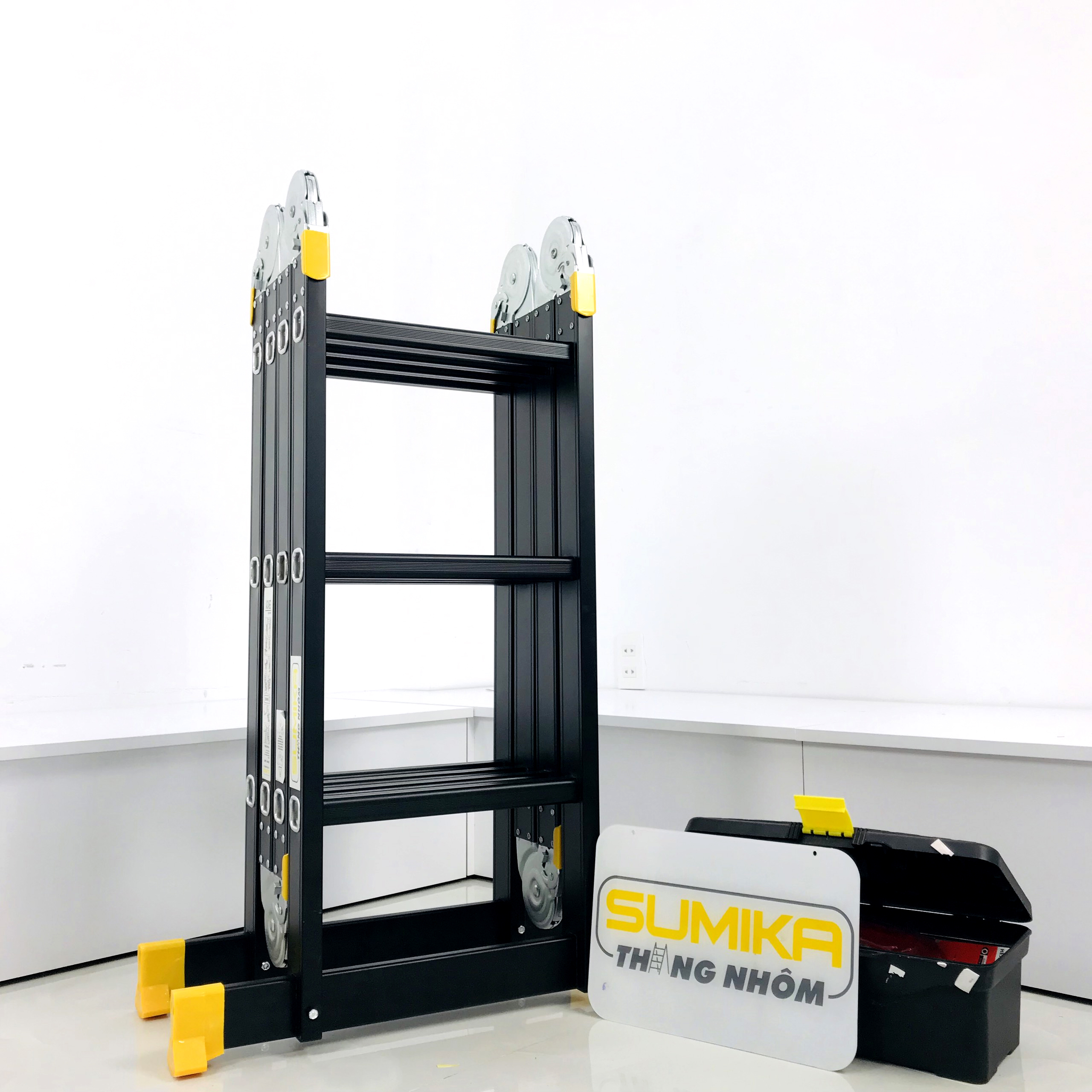 ✨Thang nhôm gấp 4 đoạn Sumika SKM203 NEW (chữ A - 1.73m, chữ I - 3.58m), 14 tư thế sử dụng, tải trọng 150kg, sơn tĩnh điện, chống trầy xước, khóa chốt cao cấp, nhiều đế cao su chống trượt