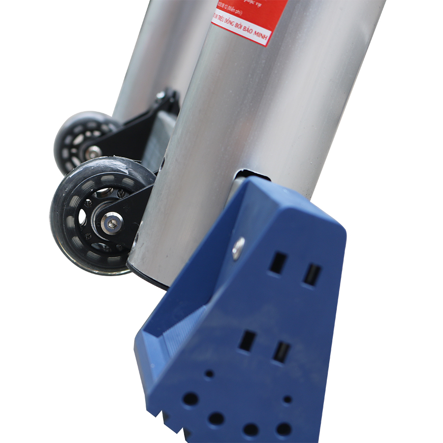 - Thang có 2 chân phụ và bổ sung thêm 2 bánh xe phía chân thang