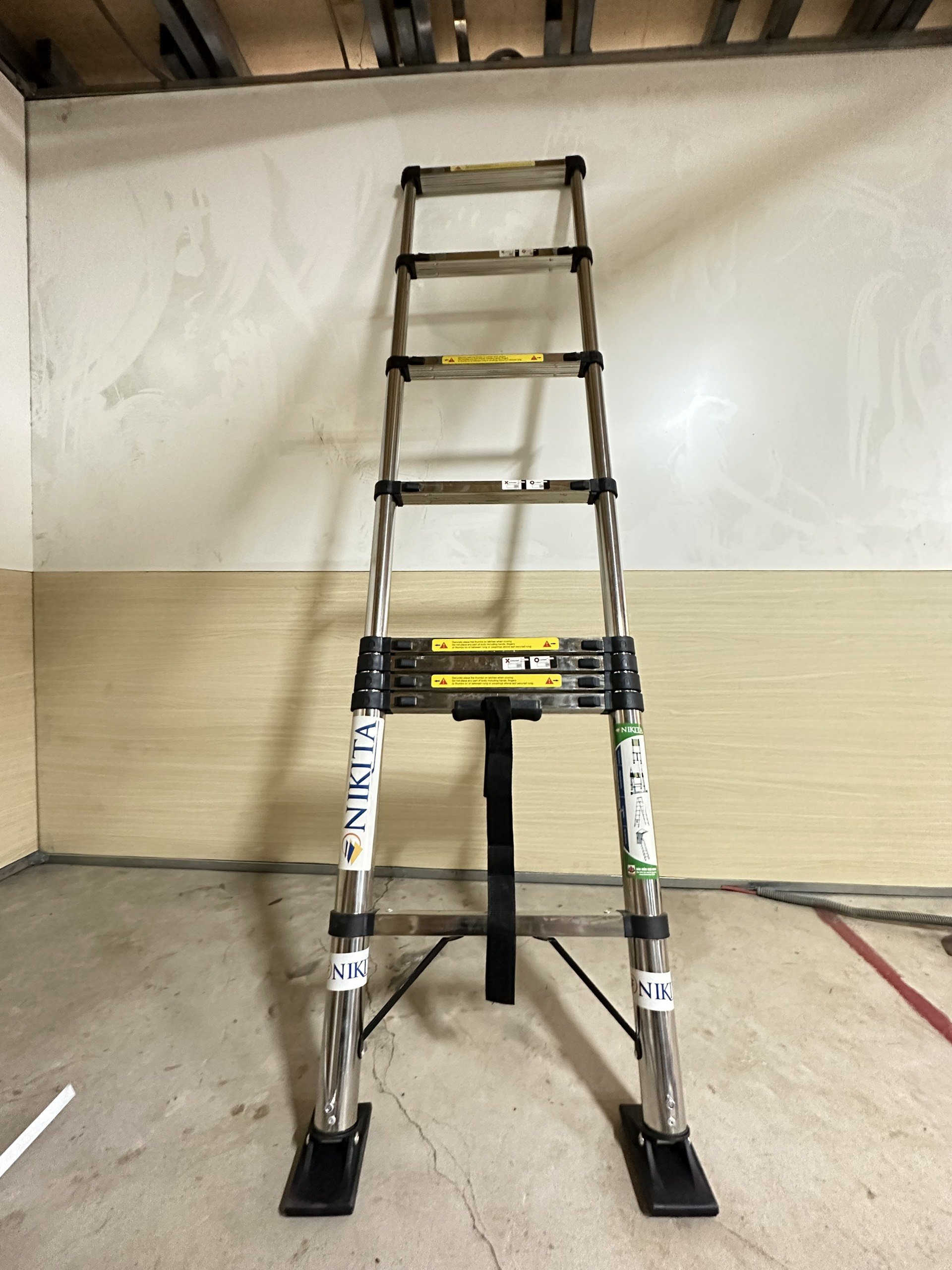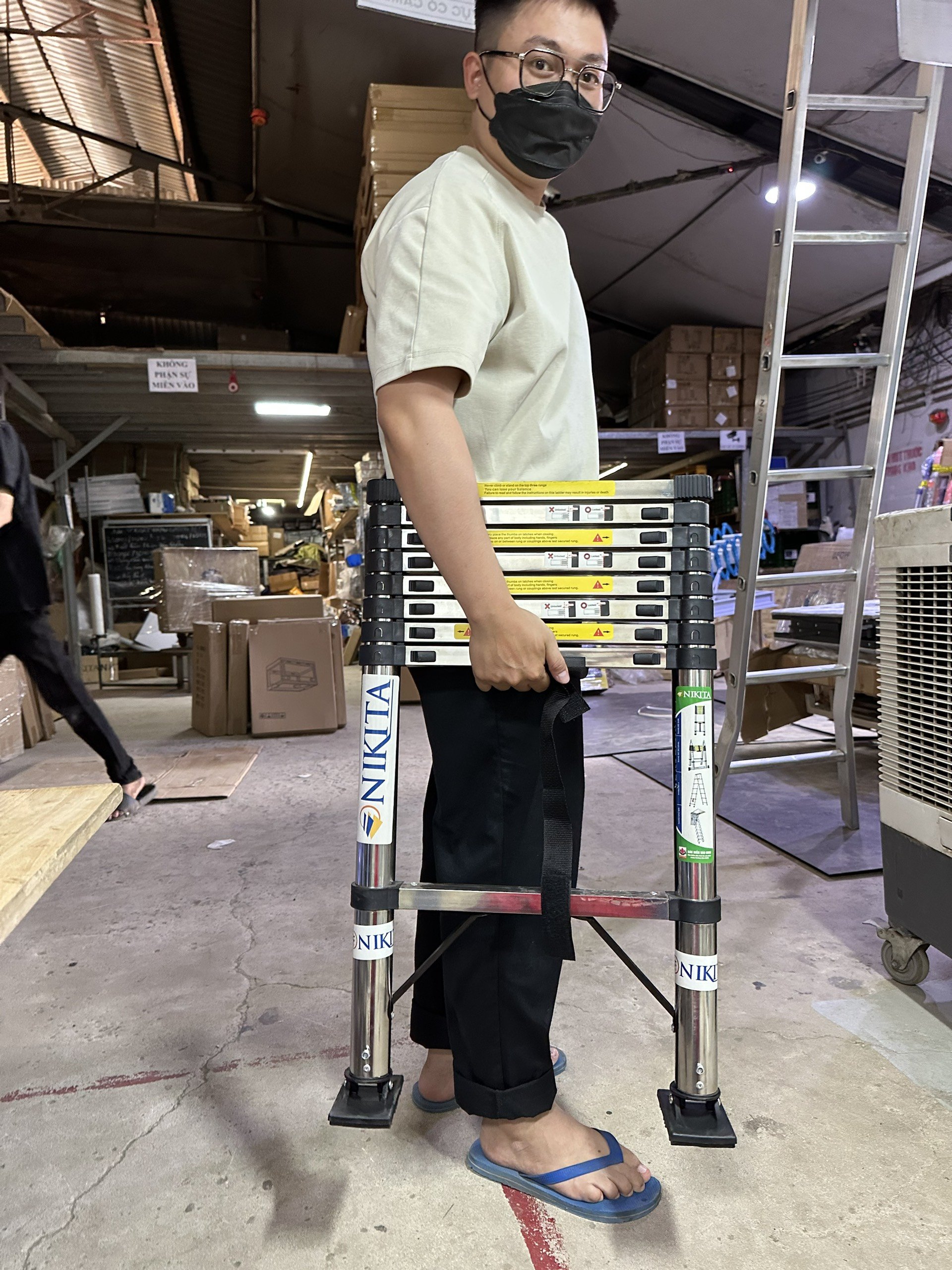 Thang Nikita inox rút đơn 3,2 m tiện cất gọn, di chuyển, chống trượt an toàn, tải trọng đến 150kg
