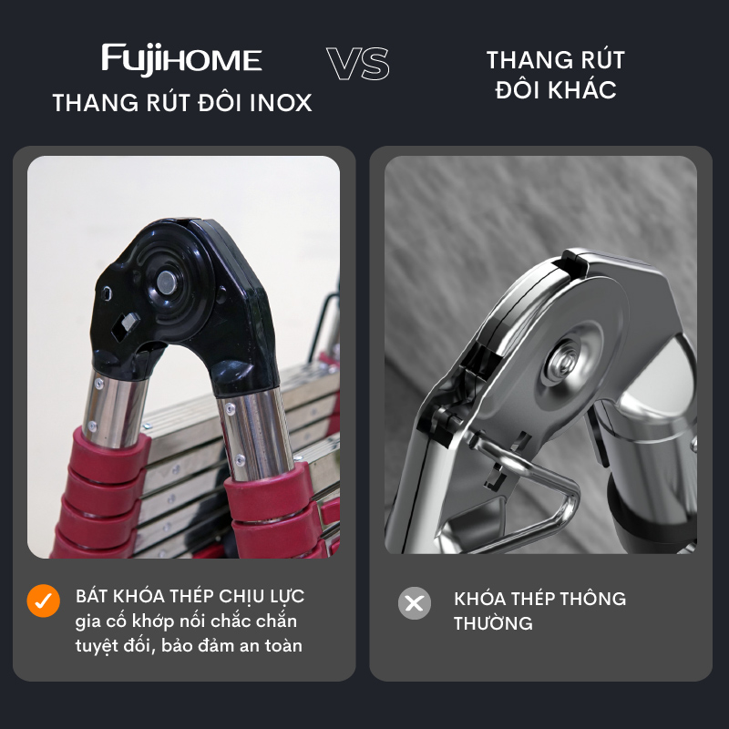 ✨Thang rút đôi chữ A inox 5M nhập khẩu FUJIHOME TLA08IR, chốt khóa tự động an toàn, có bánh xe di chuyển tiện lợi - Hàng chính hãng