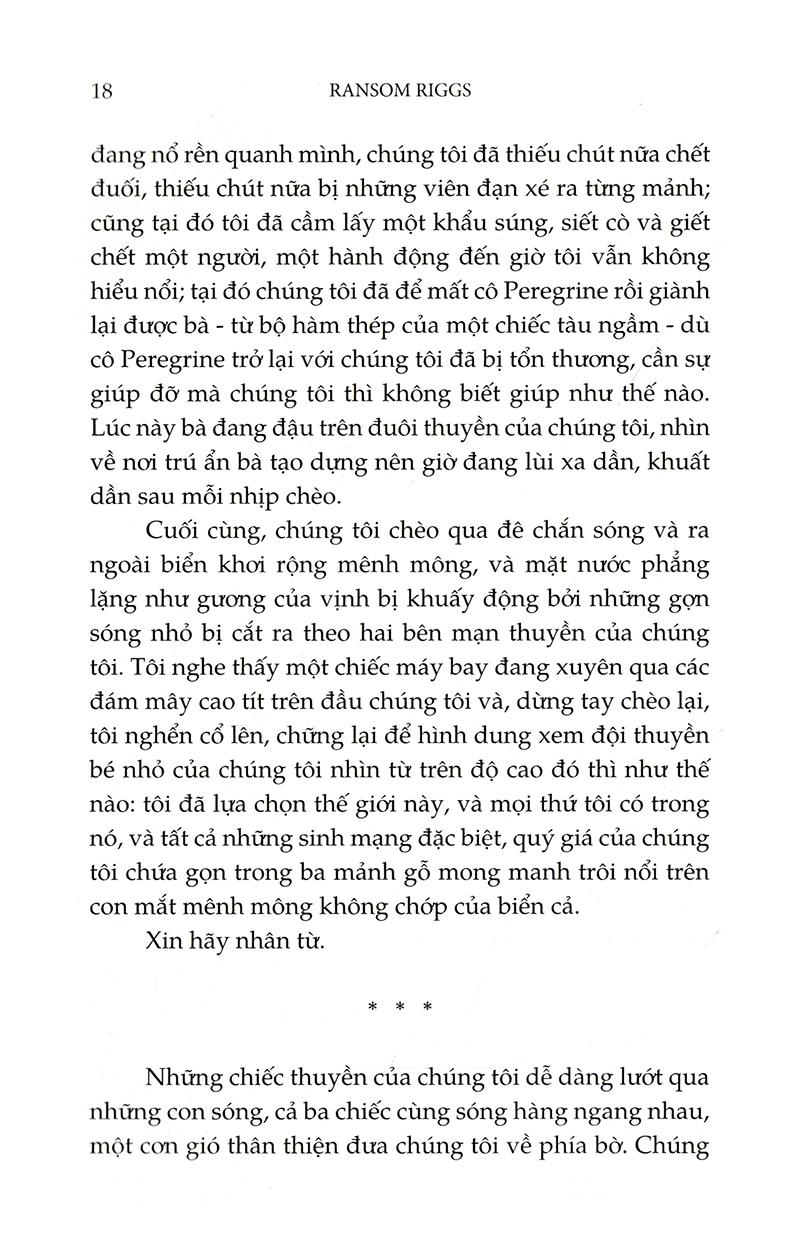 Vội vã nói lời tạm biệt hòn đảo từng là chốn náu thân yên ấm, mười đứa trẻ đặc biệt chạy trốn khỏi đám quái vật đang săn lùng mình. Chỉ có một người có thể giúp họ, cô phụ trách Peregrine, nhưng bà lại đang bị mắc kẹt trong hình dạng một con chim. Jacob Portman và bạn bè của cậu bắt đầu cuộc hành trình đầy bất trắc khó lường, hy vọng có thể tìm được người giúp cô phụ trách yêu quý trở lại dạng người. Nhưng nơi mà họ tìm đến, London năm 1940, đã là một thành phố tan hoang dưới tầm bom đạn, và những nguy hiểm chết người ẩn giấu mọi nơi, chưa kể thứ rùng rợn nhất: những xác sống, hồn rỗng. Với từng ấy thử thách, liệu đám trẻ có cứu được cô Peregrine?