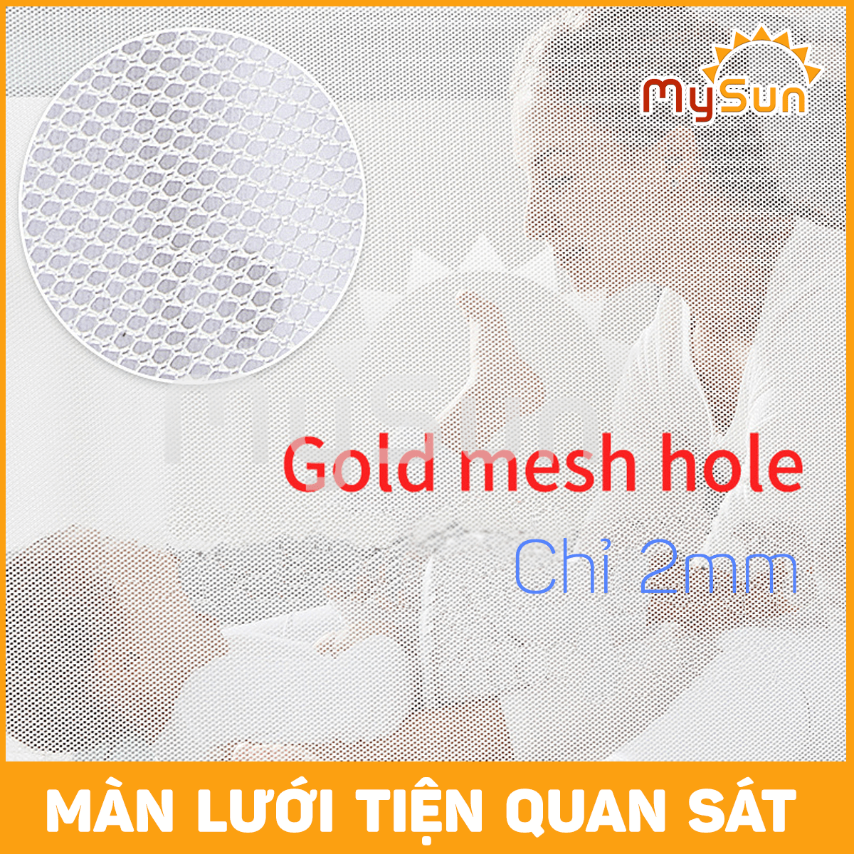 - Tấm chắn giường dạng mắt lưới 2mm giúp nhìn xuyên, thuận thiện trông coi bé.