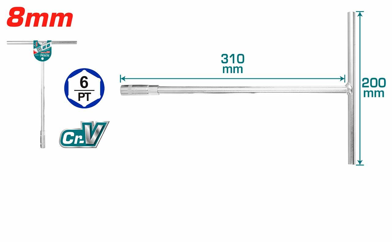 - Vật liệu molypden mạ crôm đen tráng cứng. - Cờ lê ổ cắm cho vít lục giác. - 10, 11,12, 13,14, 15, 16, 17, 19, 21 mm