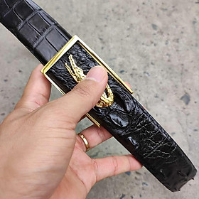 Mua tại TiktokDây liền nguyên con màu đen bản rộng 4cm + Mặt khóa logo cá sấu nổi màu vàng gold cao cấp (thép nguyên khối ko gỉ sét)
