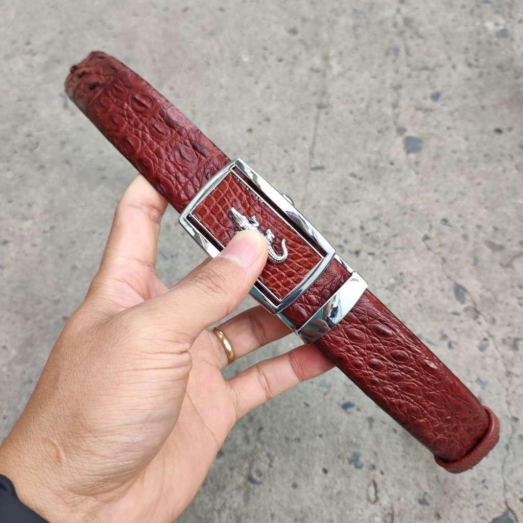 Mua tại TiktokThắt lưng được làm từ phần lưng của cá sấu lớn. Chạy từ gù xuống gai lưng qua vây rất đều và đẹp, kết hợp da bụng phần cuối dây giúp dễ dàng sử dụng.