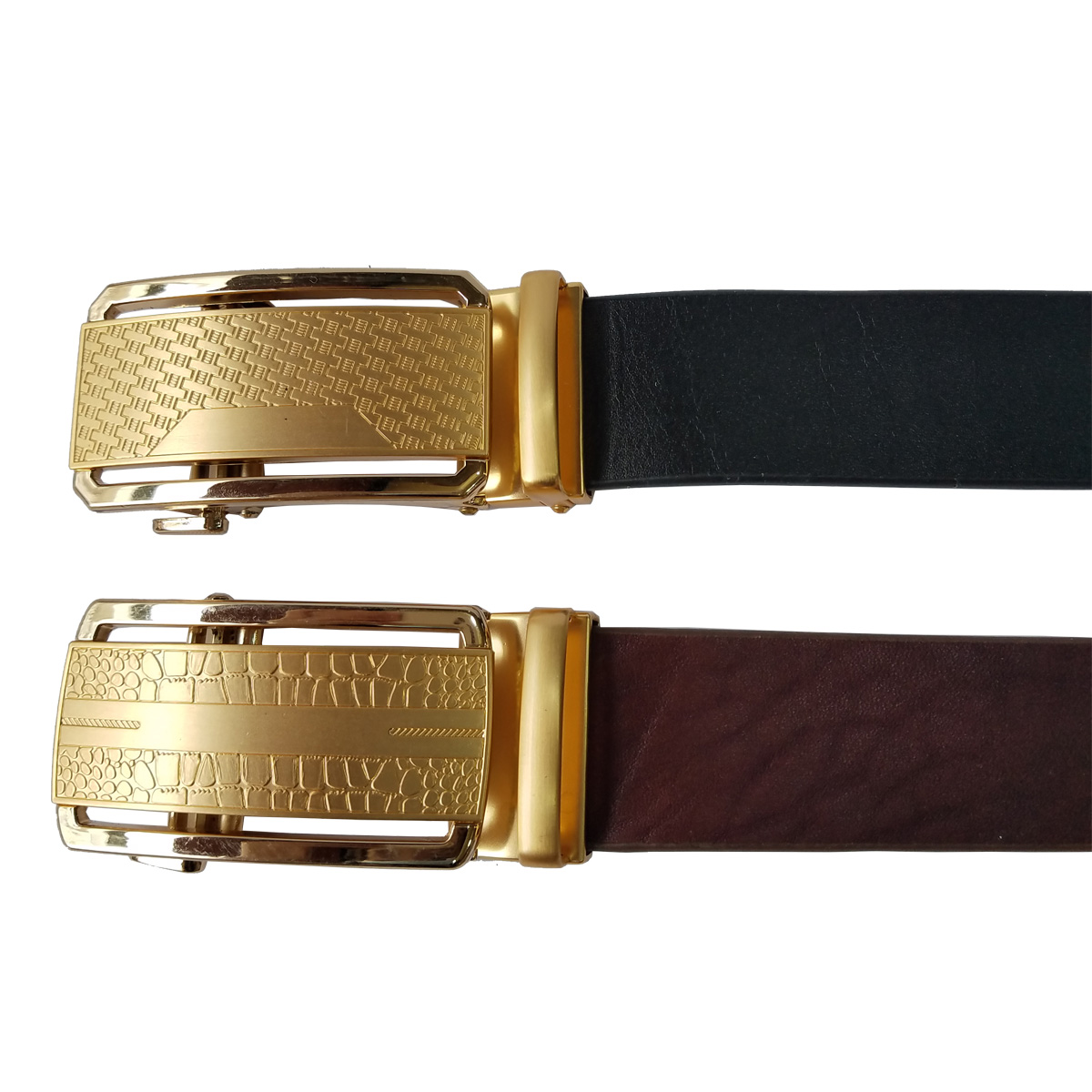 Thắt lưng nam da thật mặt khóa tự động bằng thép sáng bóng không gỉ