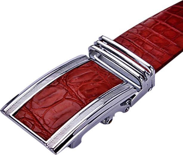 Dây nịt da cá sấu màu nâu đỏ da bụng