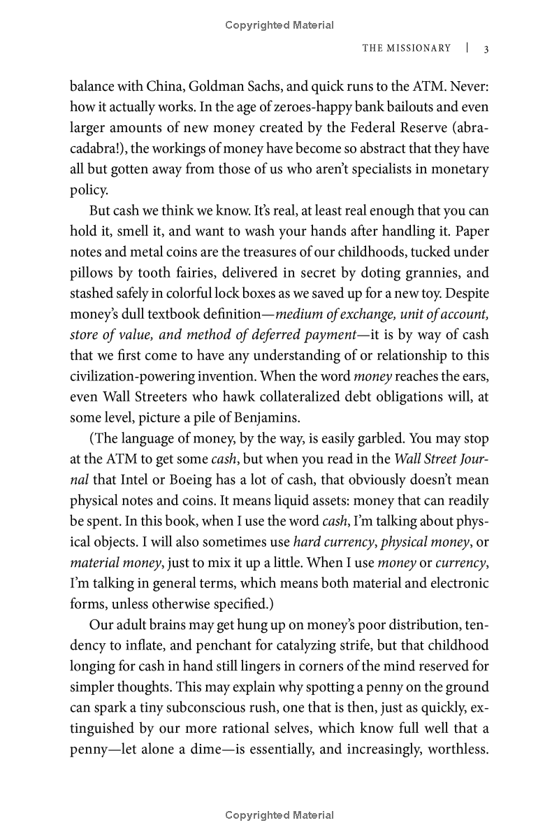 For ages, money has been represented by little metal disks and rectangular slips of paper. Yet the usefulness of physical money- to say nothing of its value- is coming under fire as never before. Intrigued by the distinct possibility that cash will soon disappear, author and Wired contributing editor David Wolman sets out to investigate the future of money, and how it will affect your with verve and wit, The End of Money explores an aspect of our daily lives so fundamental that we rarely stop to think about it. You'll never look at a dollar bill the same way again.
