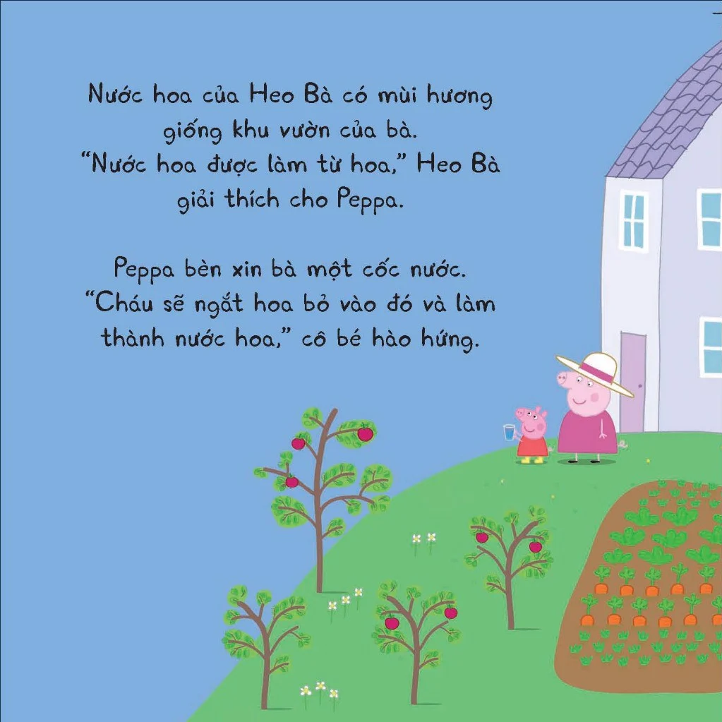 Câu chuyện sáng tạo: Cuốn sách kể về một hoạt động thủ công thú vị mà Peppa và bà tham gia, đó là làm nước hoa. Điều này khơi gợi sự tò mò và trí tưởng tượng của bé.