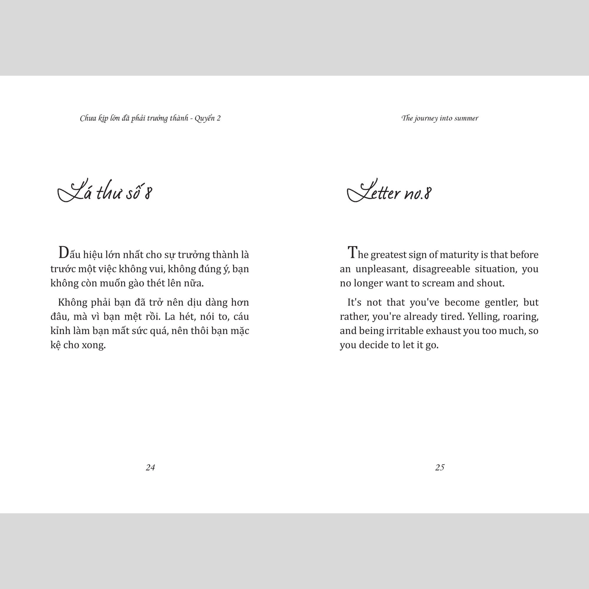“The journey into summer - Chưa kịp lớn đã phải trưởng thành quyển 2” - Cuốn sách song ngữ Việt Anh vừa giúp bạn học ngoại ngữ vừa vỗ về những năm tháng tuổi trẻ chênh vênh mơ hồ.