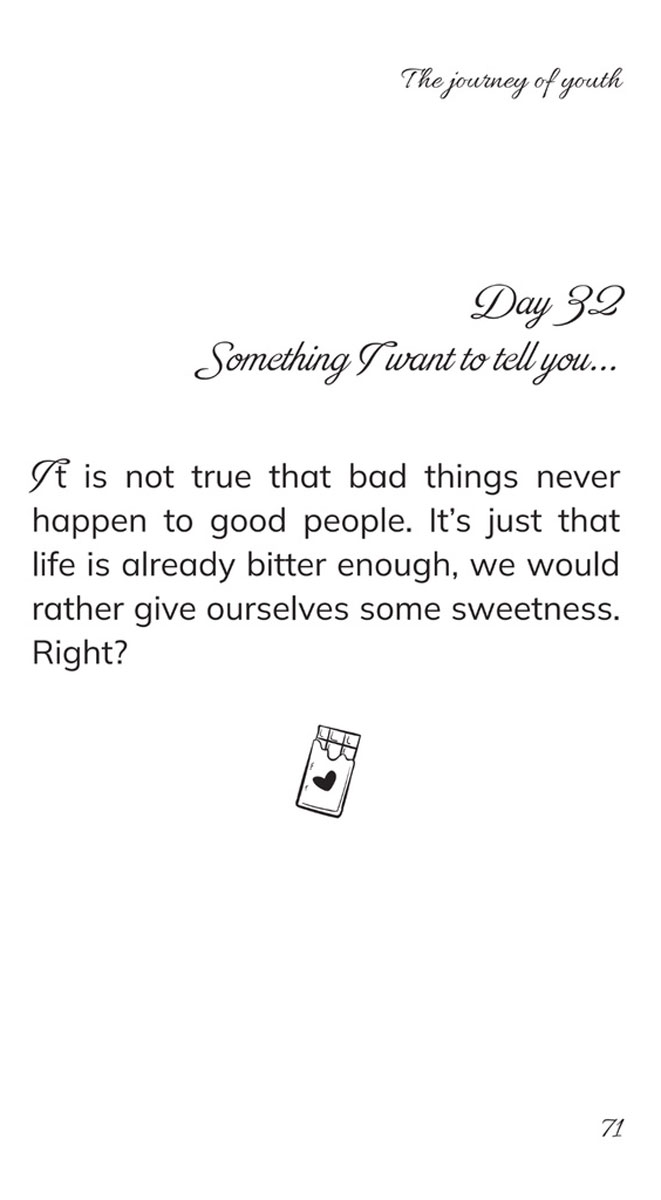 Cuốn sách “The Journey of Youth” là những lá thư được viết bằng 2 thứ tiếng Anh - Việt, nhắn nhủ tới bạn trên đoạn đường gập ghềnh nhất của tuổi trẻ. Nếu bạn đang có chút lạc lõng và hoang mang, hãy để “The Journey of Youth” ở bên, gửi tặng bạn đôi điều khích lệ.