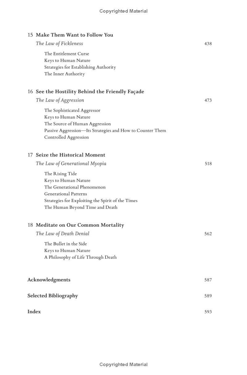 From the #1 New York Times-bestselling author of The 48 Laws of Power comes the definitive new book on decoding the behavior of the people around you Robert Greene is a master guide for millions of readers, distilling ancient wisdom and philosophy into essential texts for seekers of power, understanding and mastery. Now he turns to the most important subject of all - understanding people's drives and motivations, even when they are unconscious of them themselves. We are social animals. Our very lives depend on our relationships with people. Knowing why people do what they do is the most important tool we can possess, without which our other talents can only take us so far. Drawing from the ideas and examples of Pericles, Queen Elizabeth I, Martin Luther King Jr, and many others, Greene teaches us how to detach ourselves from our own emotions and master self-control, how to develop the empathy that leads to insight, how to look behind people's masks, and how to resist conformity to develop your singular sense of purpose. Whether at work, in relationships, or in shaping the world around you, The Laws of Human Nature offers brilliant tactics for success, self-improvement, and self-defense.