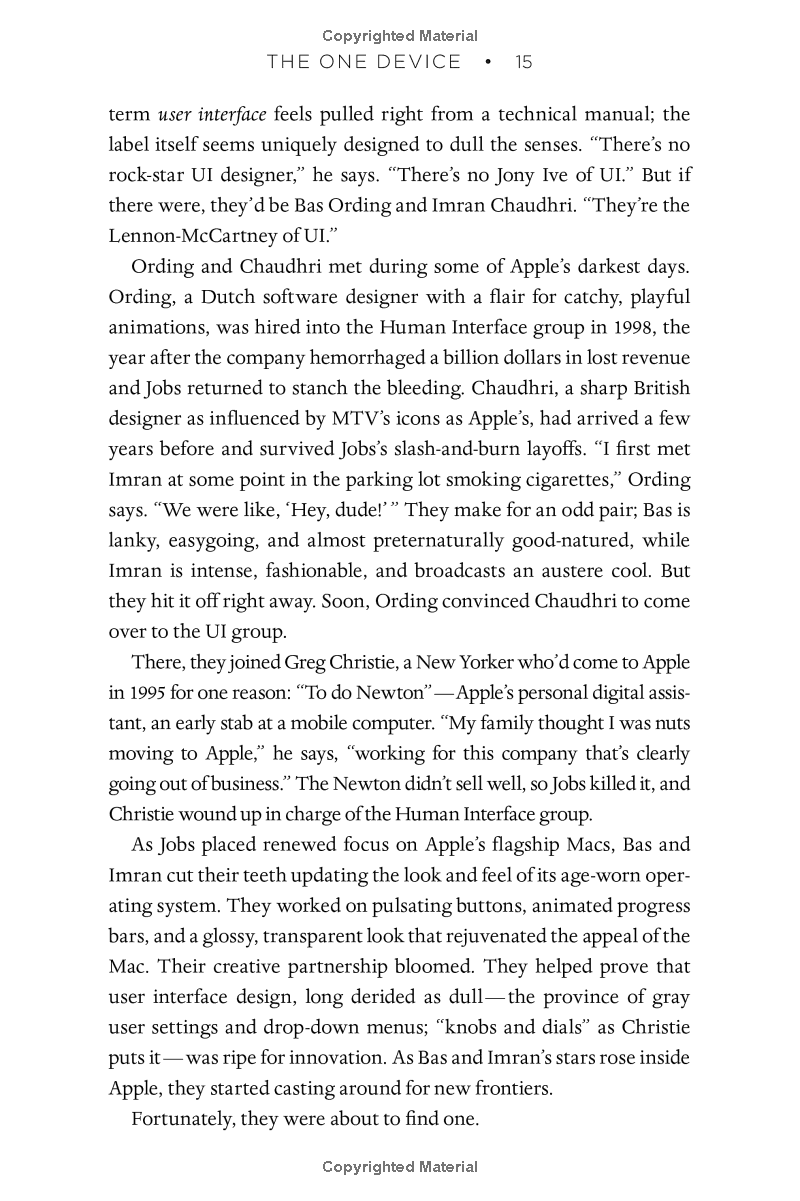 The One Device is a roadmap for design and engineering genius, an anthropology of the modern age, and an unprecedented view into one of the most secretive companies in history. This is the untold account, ten years in the making, of the device that changed everything.
