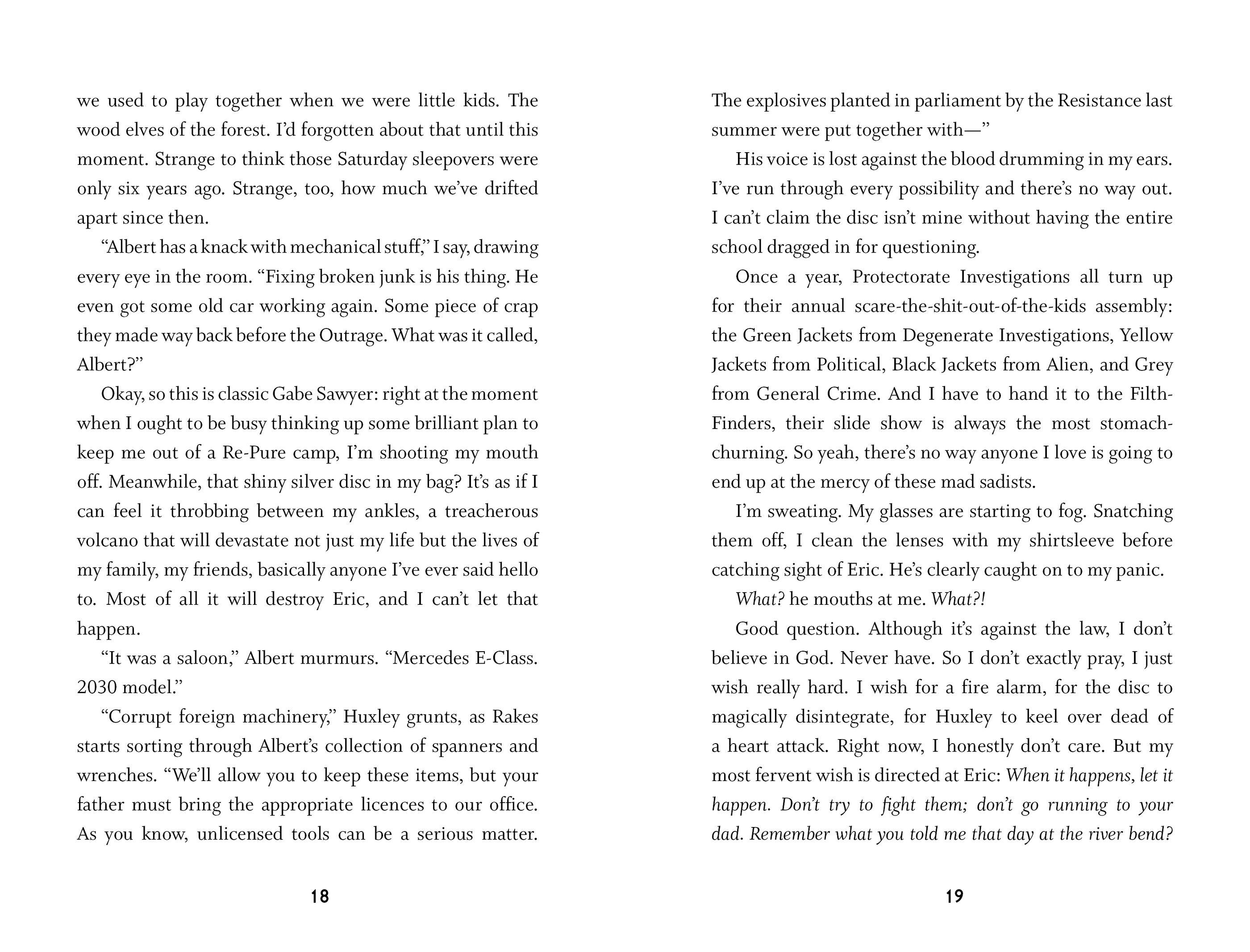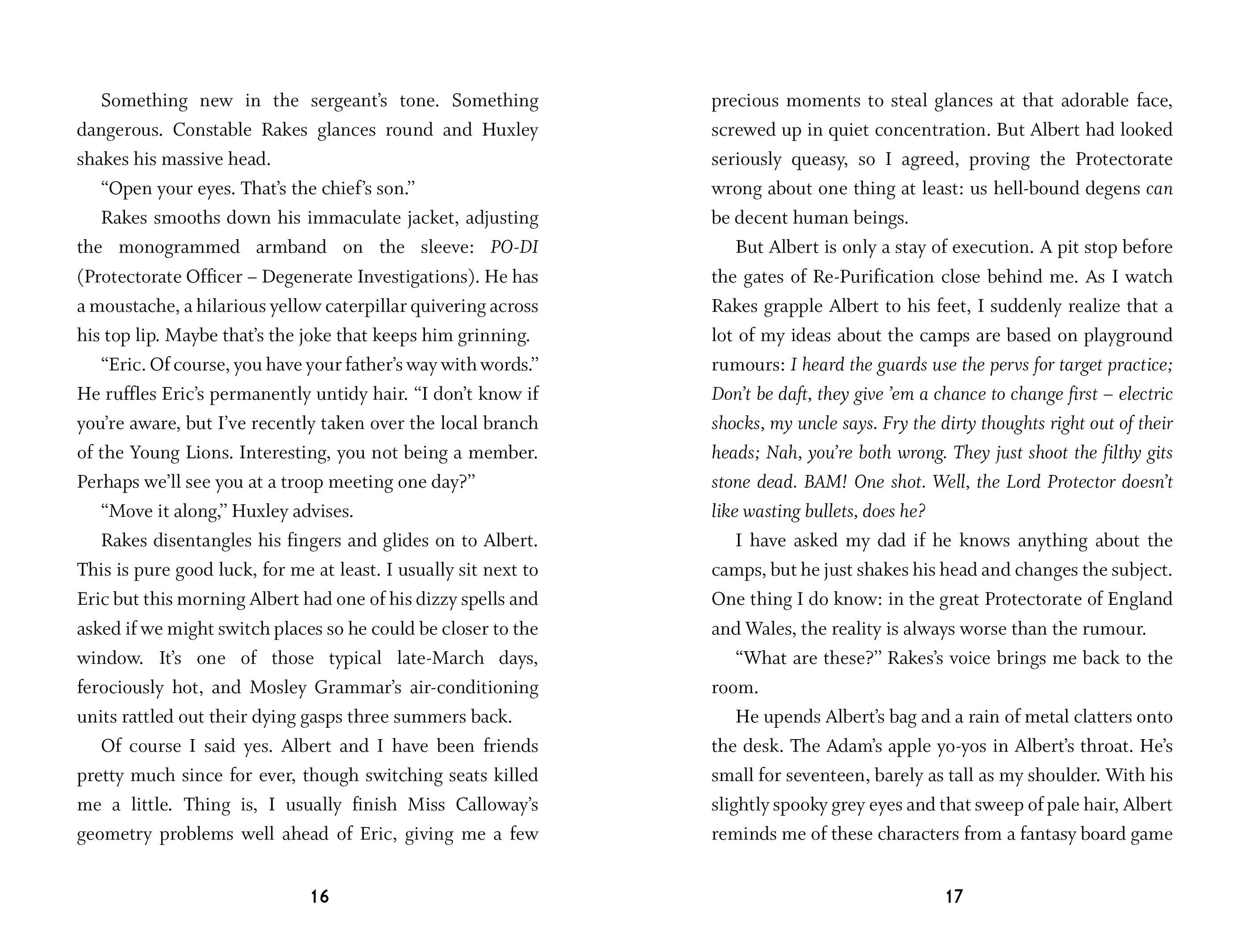 Welcome to England, where the Protectorate enforces the Public Good. Here, there are rules for everything - what to eat, what to wear, what to do, what to say, what to read, what to think, who to obey, who to hate, who to love. Your safety is assured, so long as you follow the rules.