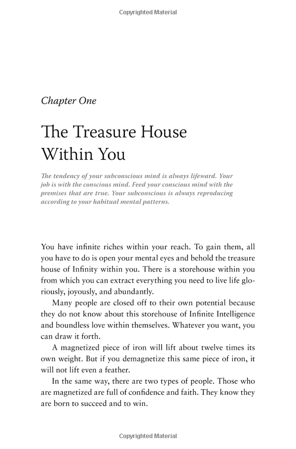 The Power of Your Subconscious Mind introduces and explains the mind-focusing techniques that remove the subconscious obstacles that prevent us from achieving the success we want-and deserve. This authorized edition of Dr. Murphy's keystone work is the first premium mass market edition to feature additional commentary drawn from his unpublished writings. As practical as it is inspiring, Dr. Murphy's work demonstrates with real-life examples the way to unleash extraordinary mental powers to build self-confidence, create harmonious relationships, gain professional success, amass wealth, conquer fears and phobias, banish bad habits, and even to effect physical healing and promote overall well-being and happiness .