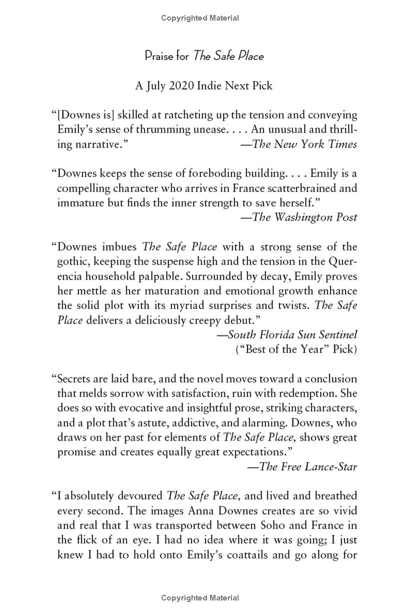 The Safe Place Superbly tense and oozing with atmosphere, Anna Downes's debut, The Safe Place, is the perfect summer suspense, with the modern gothic feel of Ruth Ware and the morally complex famil...