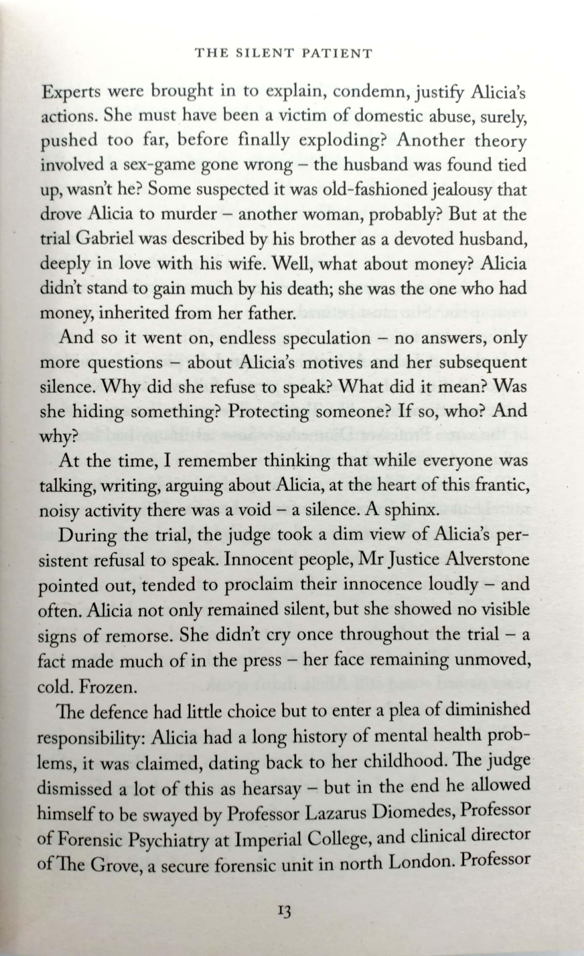 Until, late one evening, Alicia shoots Gabriel five times and then never speaks another word.