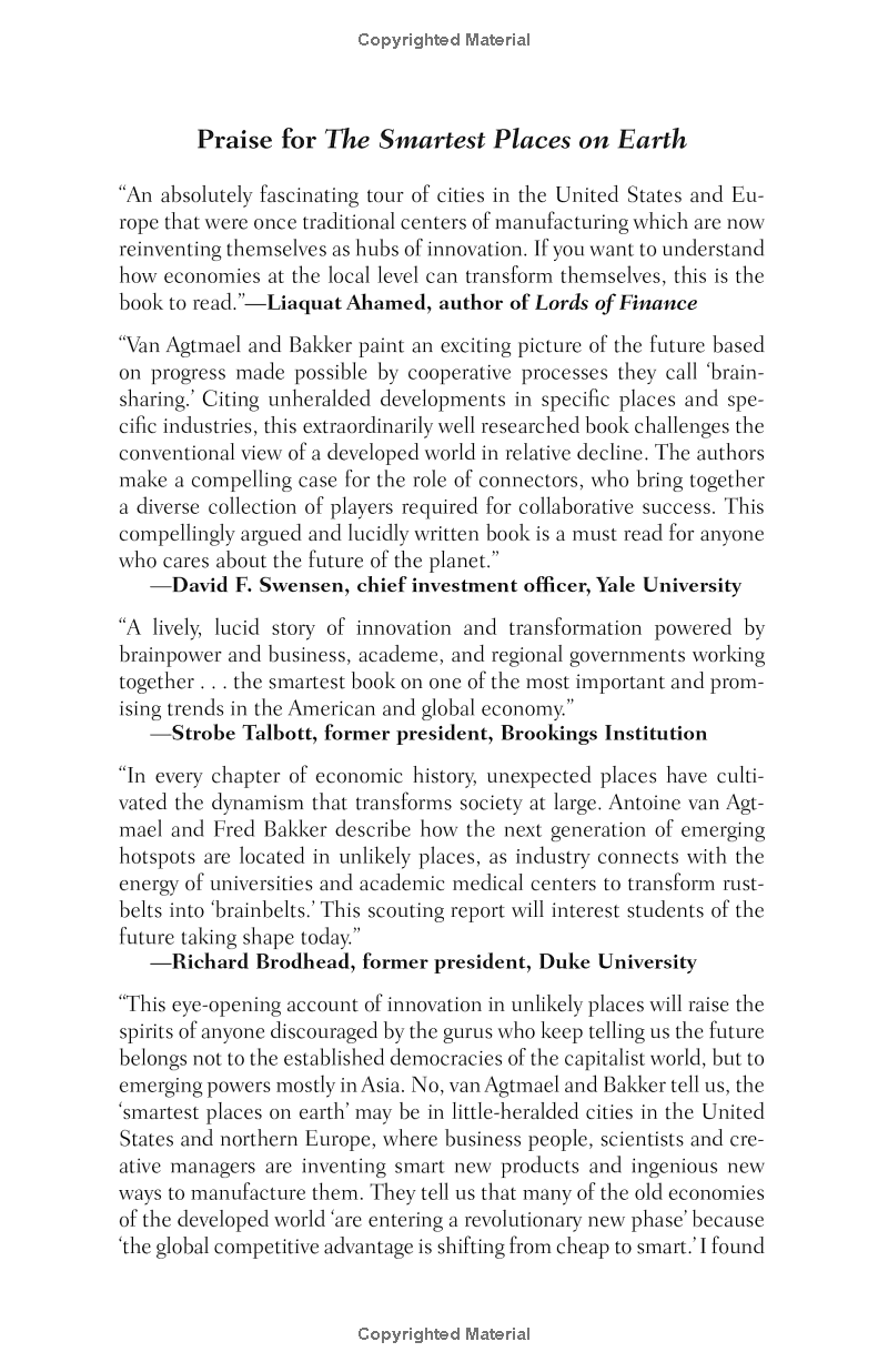 Antoine van Agtmael and Fred Bakker counter recent conventional wisdom that the American and northern European economies have lost their initiative in innovation and their competitive edge by focusing on an unexpected and hopeful trend: the emerging sources of economic strength coming from areas once known as "rustbelts" that had been written off as yesterday's story.