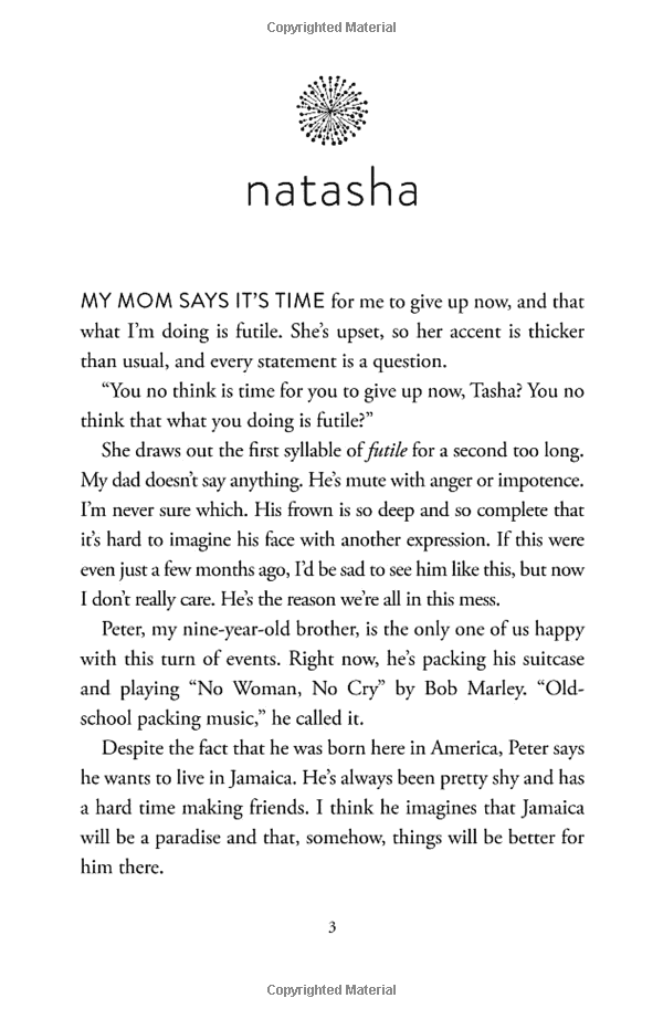 Not when my family is twelve hours away from being deported to Jamaica. Falling in love with him won't be my story.