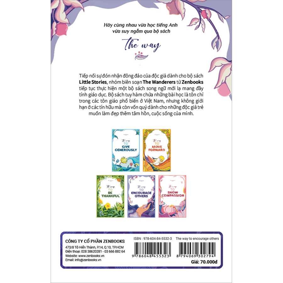The Way To Encourage Others (Song Ngữ Anh - Việt)------------ Quý độc giả thân mến,Tiếp nối sự đón nhận đông đảo của độc giả dành cho bộ sách Little Stories, nhóm biên soạn The Wanderers từ Zenbooks t...