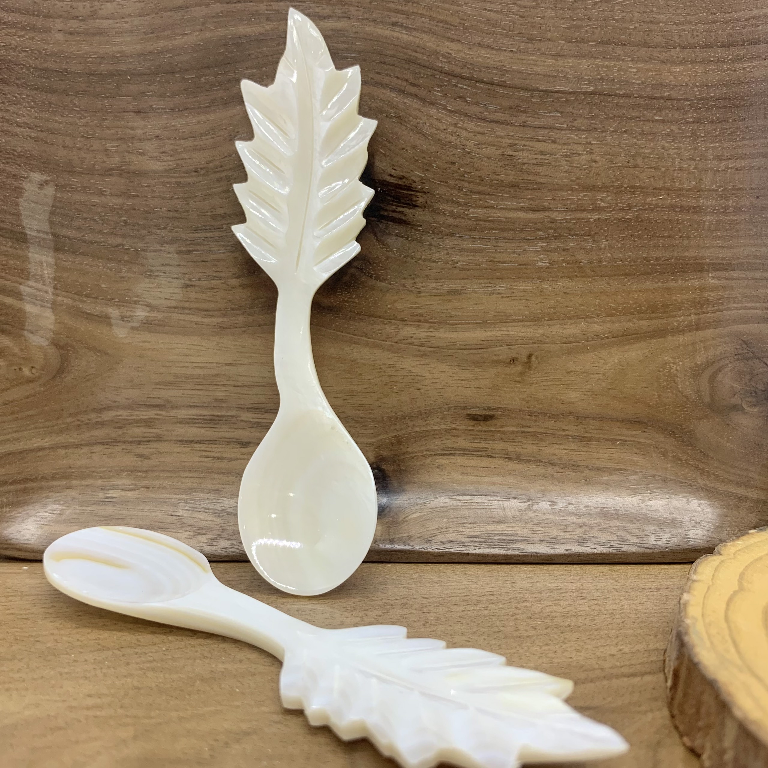 ✨Thìa/Muỗng hình chiếc lá bằng vỏ trai tự nhiên màu Trắng (CTH738T) An toàn cho sức khỏe