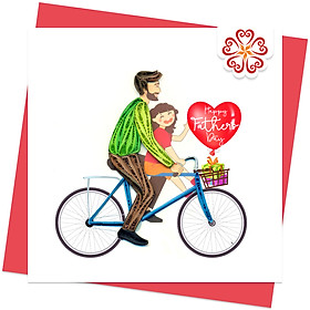 ✨Thiệp chúc Ngày của ba, thiệp giấy xoắn 15 x 15 cm, Ba và con trên chiếc xe đạp