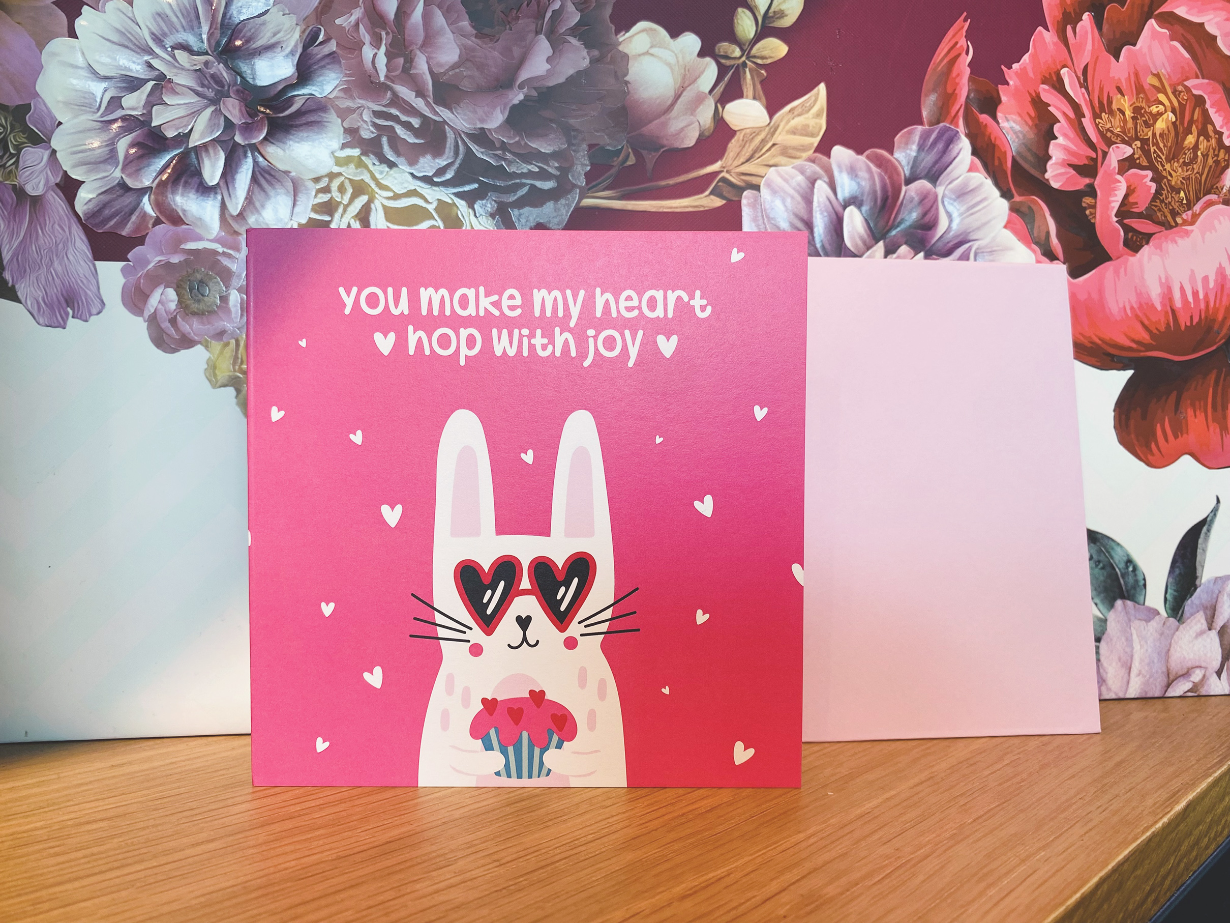 ✨Thiệp tình yêu, Valentine, tỏ tình, SDstationery Hop With Joy, hình thỏ dễ thương vui nhộn, vuông 12x12 cm