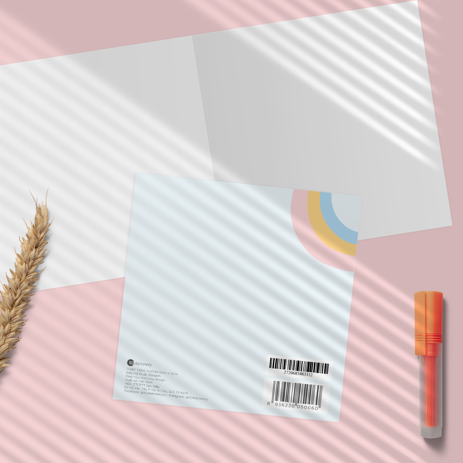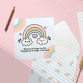 ✨Thiệp tình yêu, Valentine, tỏ tình, SDstationery Nắng Mưa, hình mây cầu vòng dễ thương, vuông 12x12 cm