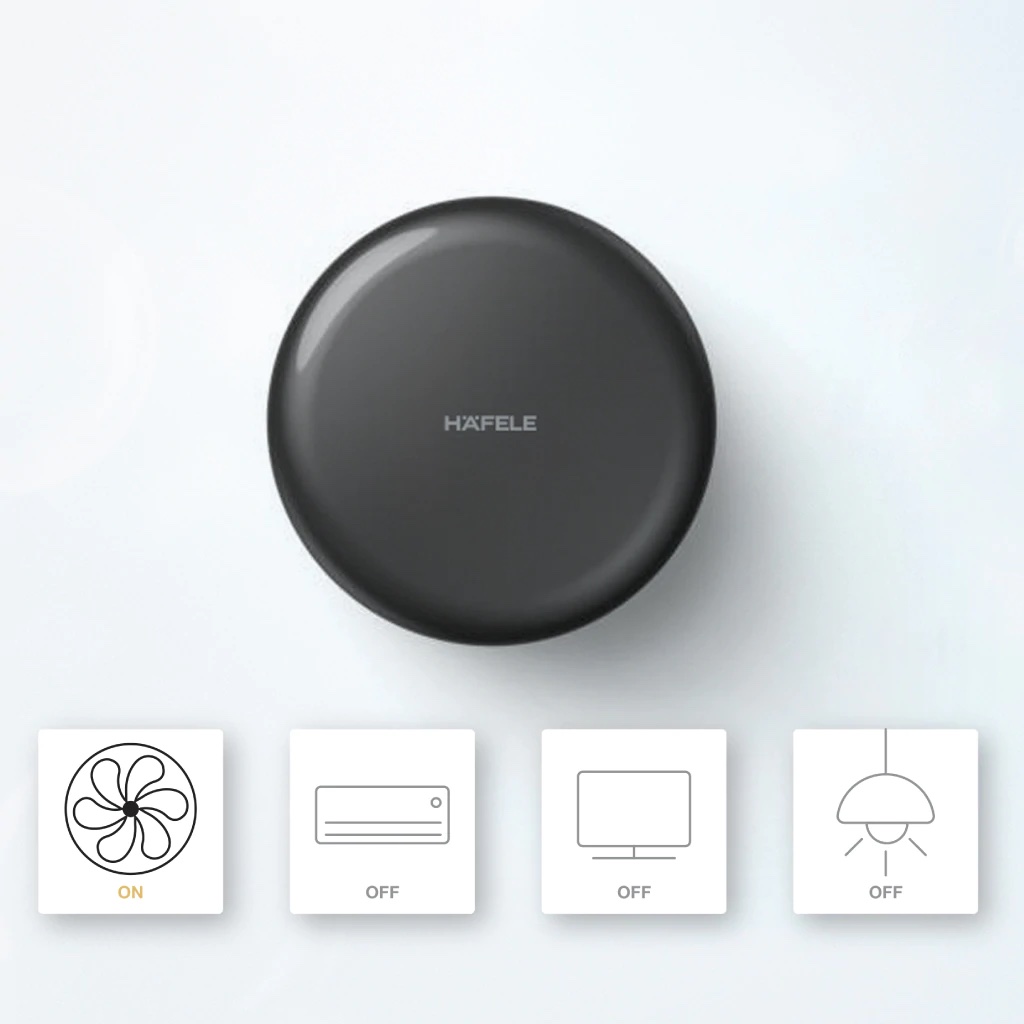 Thiết bị điều khiển hồng ngoại có thể điều khiển các thiết bị có sử dụng điều khiển từ xa hồng ngoại như Tivi, máy lạnh thông qua APP Hafele Smart Living hoặc giọng nói.
