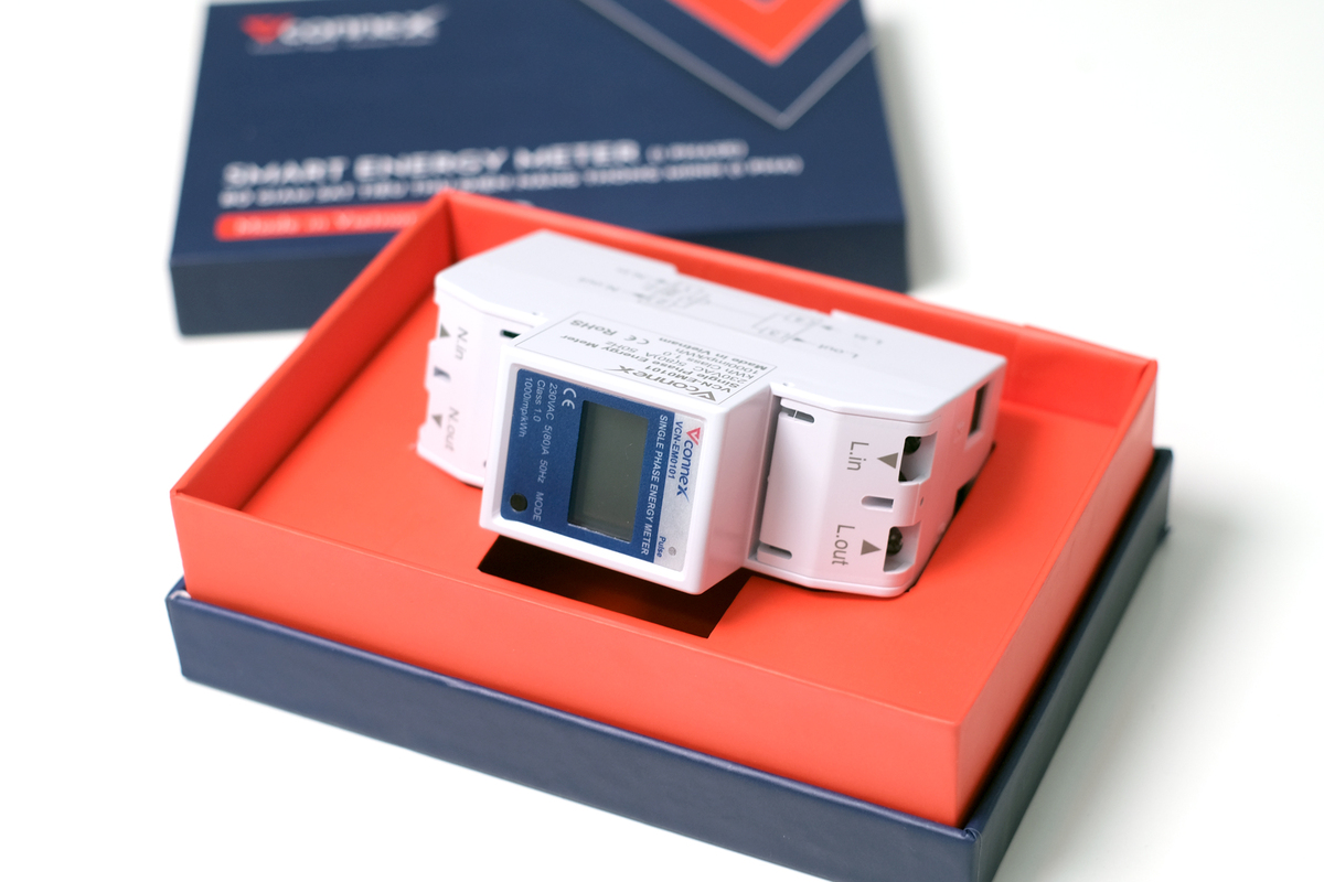 Thiết bị giám sát tiêu thụ điện năng thông minh Vconnex, có chứng nhận viện đo lường, kết nối app.